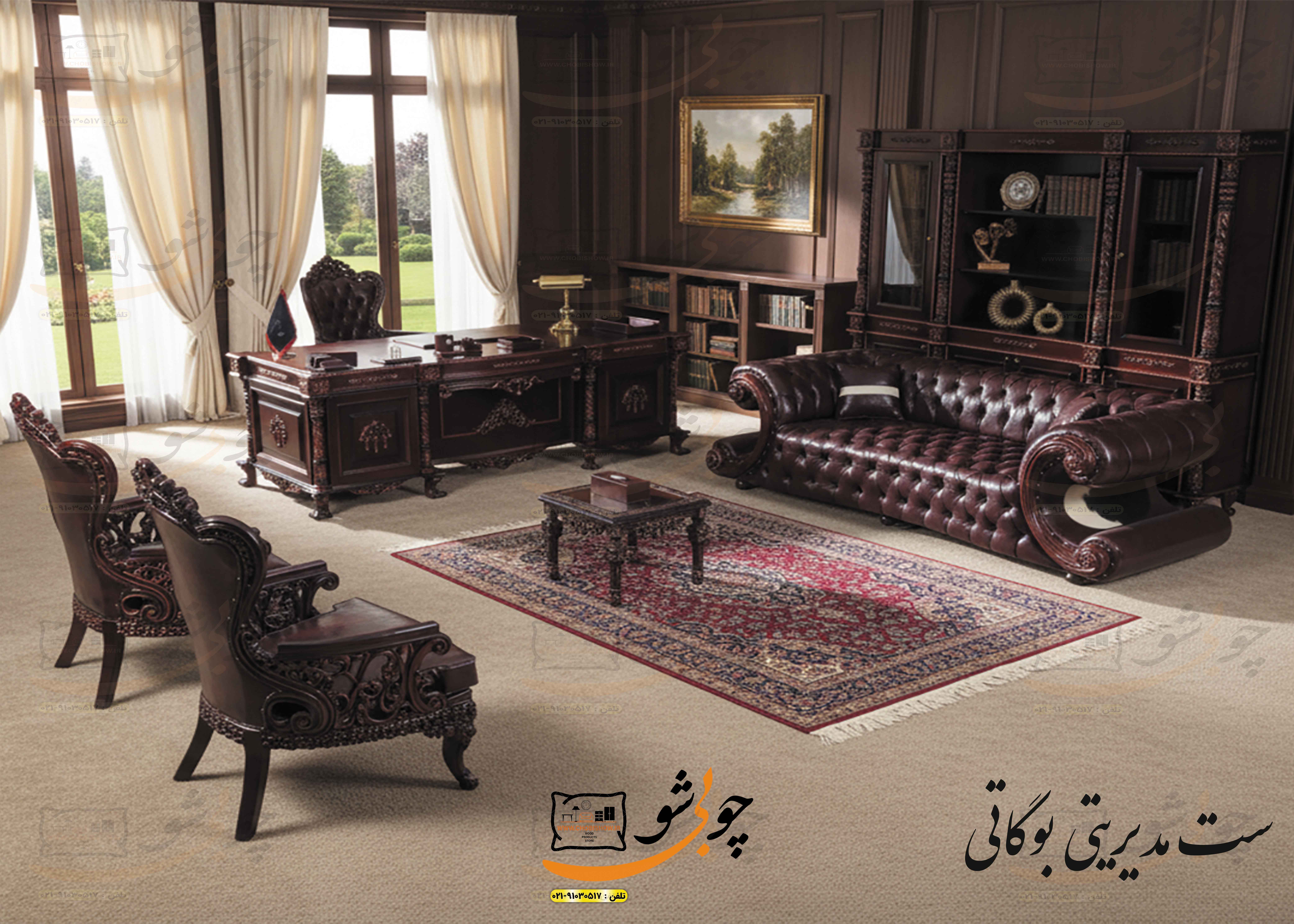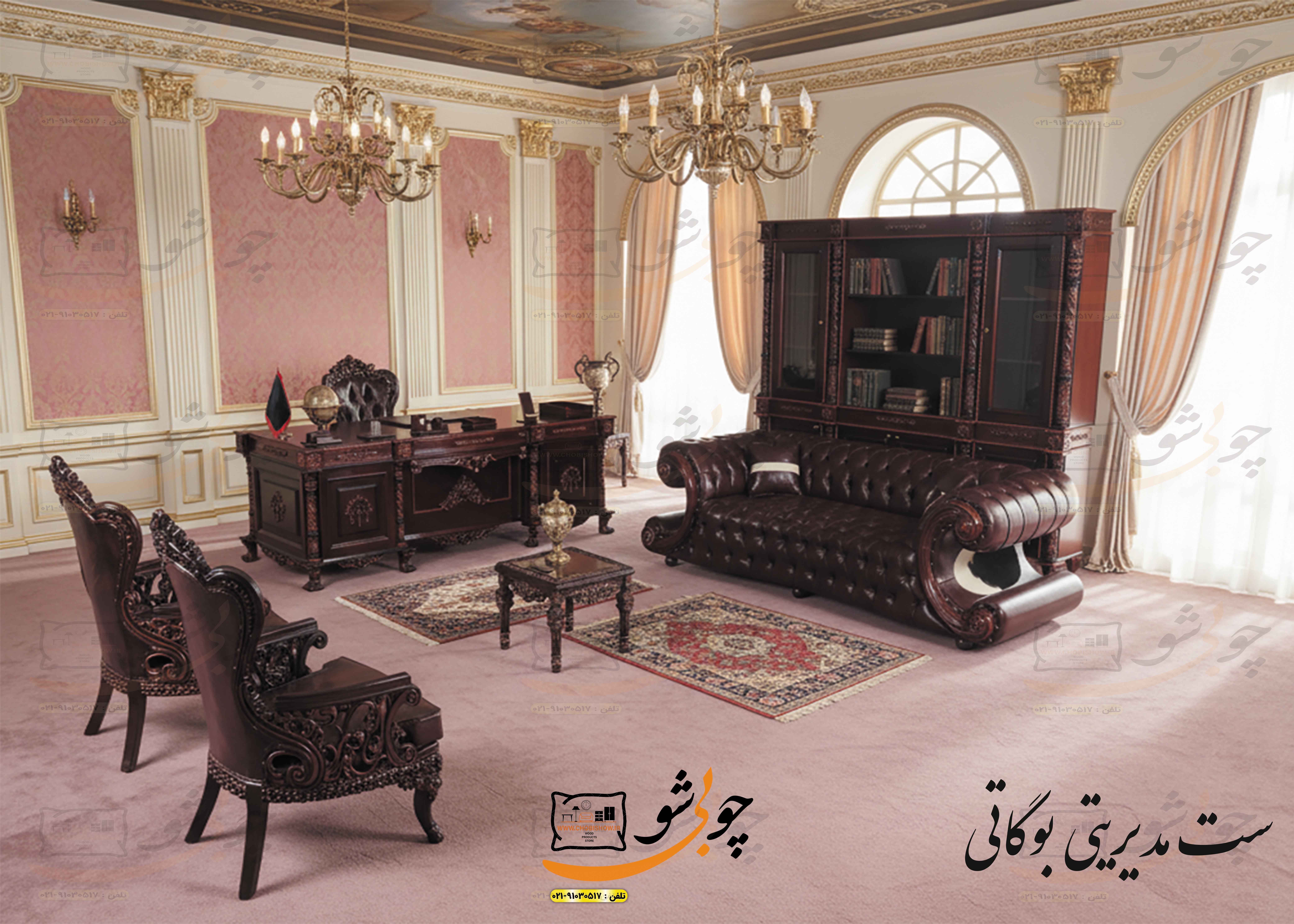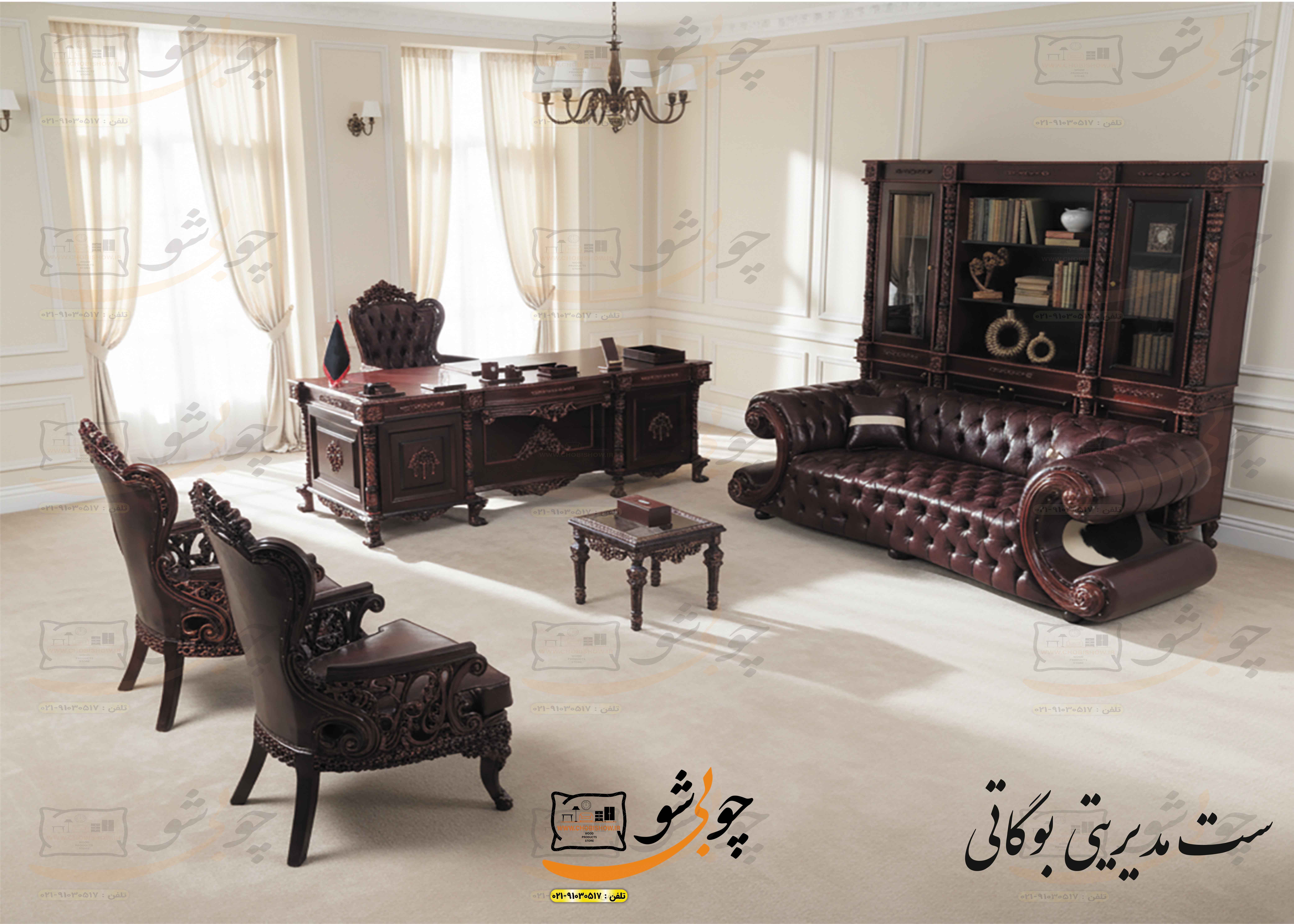 مبلمان مدیریتی مدل بوگاتی را میتوانید به رنگ دلخواه خود ثبت سفارش کنید فقط کافیست بعد از ثبت سفارش مستقیماً با خط پشتیبانی چوبی شو به شماره 02191030517 - 09199621797 تماس بگیرید و رنگ سفارش مورد نظر خود را اعلام کنید.
