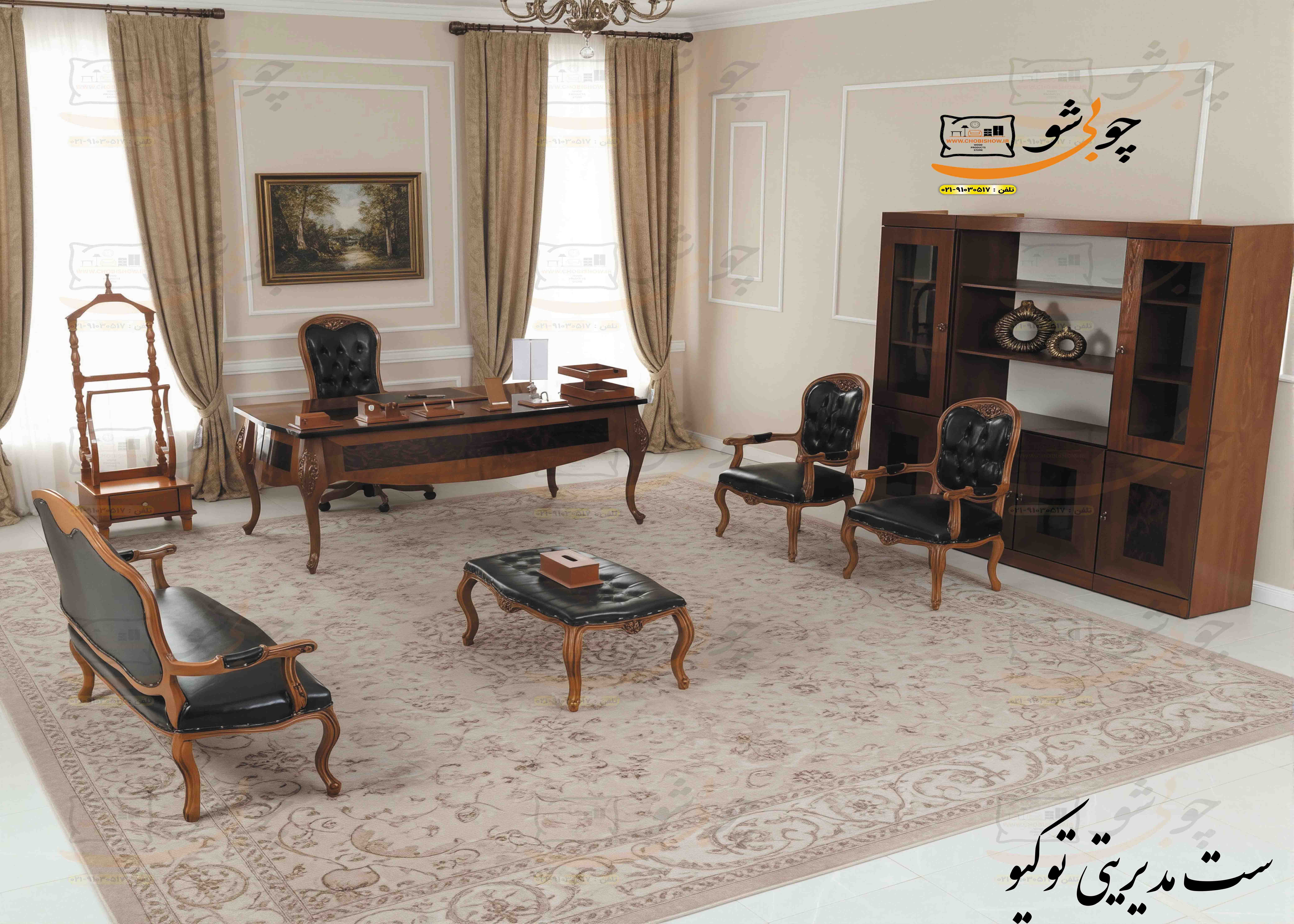 مبلمان مدیریتی مدل توکیو را میتوانید به رنگ دلخواه خود ثبت سفارش کنید فقط کافیست بعد از ثبت سفارش مستقیماً با خط پشتیبانی چوبی شو به شماره 02191030517 - 09199621797 تماس بگیرید و رنگ سفارش مورد نظر خود را اعلام کنید.