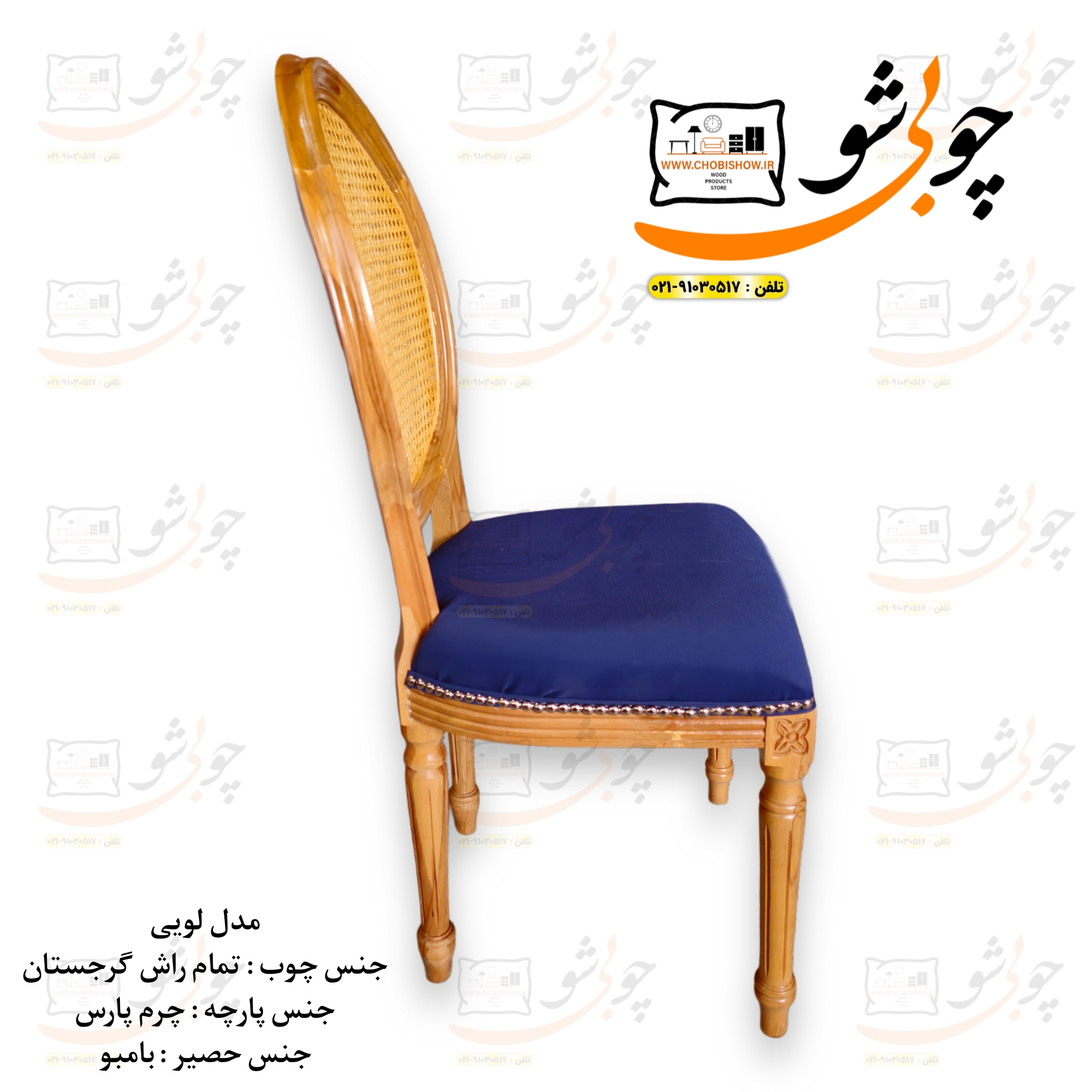 کمپانی چوبی شو یک سیستم یکپارچه تولید محصولات دکوراسیون میباشد که به راحتی جهت رفاه مشتریان عزیز محصولات خود را با قیمت تولید مستقیماً از طریق وب سایت رسمی خود www.chobishow.ir به شما عزیزان ارائه میکند. ویدئوی صندلی زیبای تمام راش لویی پشت حصیری میتوانید به راحتی در پایین مشاهده کنید و از زوایای مختلف این صندلی زیبا را بازبینی کنید. صندلی ناهار خوری تمام راش مدل لویی پشت حصیری کف چرم از تولیدات جدید کمپانی چوبی شو میباشد که تمامی مراحل ساخت تولید آن در خود کمپانی صورت میپذیرد. جهت انتخاب رنگ بعد از ثبت سفارش شما همکاران ما در پشتیبانی تماس گرفته و مشاوره کاملی را جهت انتخاب رنگ چوب و پارچه خدمت شما عزیزان ارائه میدهند. در صورتی که نیازی به زنگ و مشاوره ندارید مستقیماً از کالیته رنگ پارچه و چوب بار گذاری شده در همین قسمت کد رنگی پارچه و چوب خود را در قسمت توضیحات سفارش خود ثبت کنید.