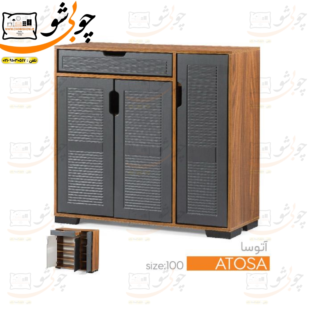 کمپانی چوبی شو یک سیستم یکپارچه تولید محصولات دکوراسیون میباشد که به راحتی جهت رفاه مشتریان عزیز محصولات خود را با قیمت تولید مستقیماً از طریق وب سایت رسمی خود www.chobishow.ir به شما عزیزان ارائه میکند. جاکفشی آتوسا از تولیدات جدید کمپانی چوبی شو میباشد که تمامی مراحل ساخت تولید آن در خود کمپانی صورت میپذیرد. جهت انتخاب رنگ بعد از ثبت سفارش شما همکاران ما در پشتیبانی تماس گرفته و مشاوره کاملی را خدمت شما عزیزان ارائه میدهند.
