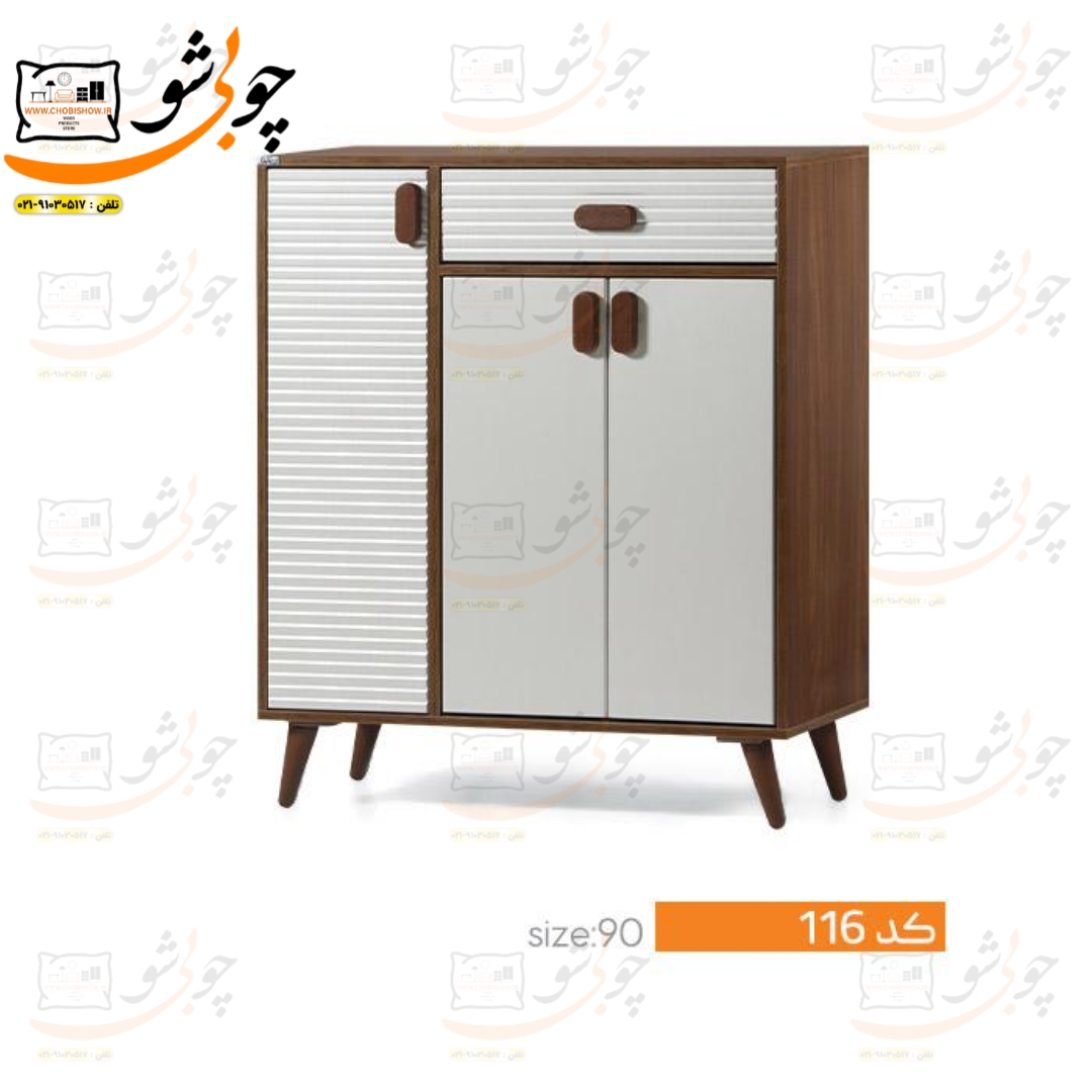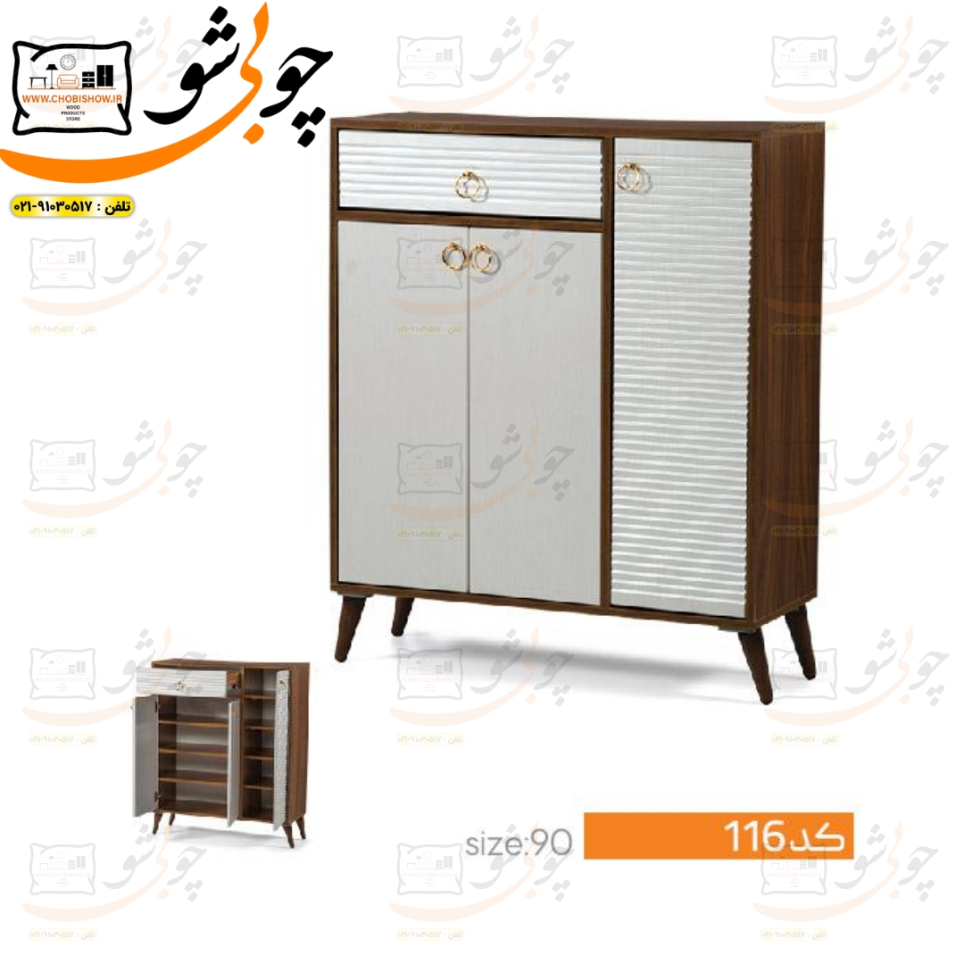 کمپانی چوبی شو یک سیستم یکپارچه تولید محصولات دکوراسیون میباشد که به راحتی جهت رفاه مشتریان عزیز محصولات خود را با قیمت تولید مستقیماً از طریق وب سایت رسمی خود www.chobishow.ir به شما عزیزان ارائه میکند. جاکفشی ایوان کد ۱۱۶ از تولیدات جدید کمپانی چوبی شو میباشد که تمامی مراحل ساخت تولید آن در خود کمپانی صورت میپذیرد. جهت انتخاب رنگ بعد از ثبت سفارش شما همکاران ما در پشتیبانی تماس گرفته و مشاوره کاملی را خدمت شما عزیزان ارائه میدهند.