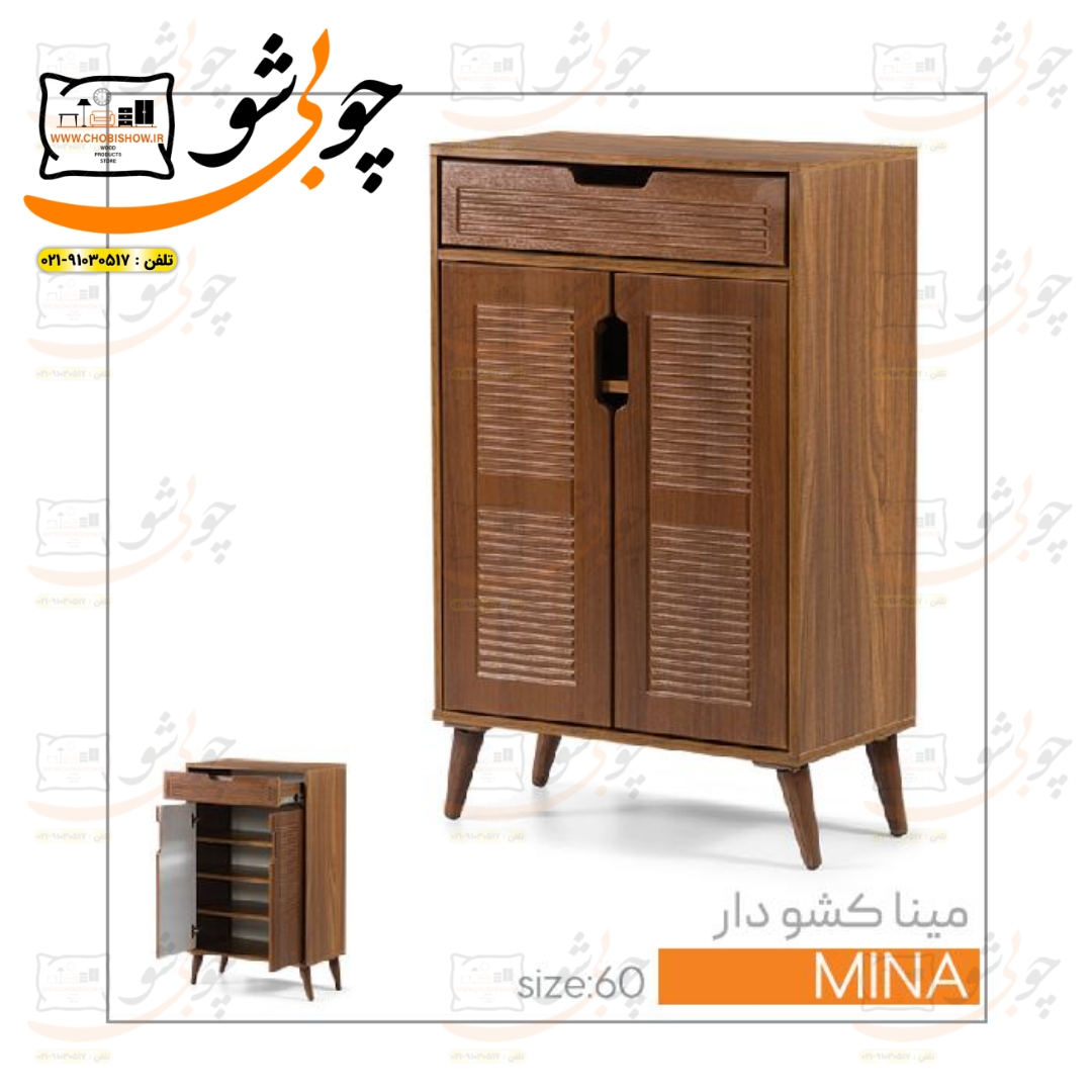 کمپانی چوبی شو یک سیستم یکپارچه تولید محصولات دکوراسیون میباشد که به راحتی جهت رفاه مشتریان عزیز محصولات خود را با قیمت تولید مستقیماً از طریق وب سایت رسمی خود www.chobishow.ir به شما عزیزان ارائه میکند. جاکفشی مدل مینا از تولیدات جدید کمپانی چوبی شو میباشد که تمامی مراحل ساخت تولید آن در خود کمپانی صورت میپذیرد. جهت انتخاب رنگ بعد از ثبت سفارش شما همکاران ما در پشتیبانی تماس گرفته و مشاوره کاملی را خدمت شما عزیزان ارائه میدهند.