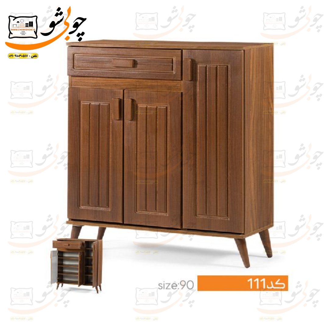 کمپانی چوبی شو یک سیستم یکپارچه تولید محصولات دکوراسیون میباشد که به راحتی جهت رفاه مشتریان عزیز محصولات خود را با قیمت تولید مستقیماً از طریق وب سایت رسمی خود www.chobishow.ir به شما عزیزان ارائه میکند. جاکفشی مدل نگین کد ۱۱۱ از تولیدات جدید کمپانی چوبی شو میباشد که تمامی مراحل ساخت تولید آن در خود کمپانی صورت میپذیرد. جهت انتخاب رنگ بعد از ثبت سفارش شما همکاران ما در پشتیبانی تماس گرفته و مشاوره کاملی را خدمت شما عزیزان ارائه میدهند.