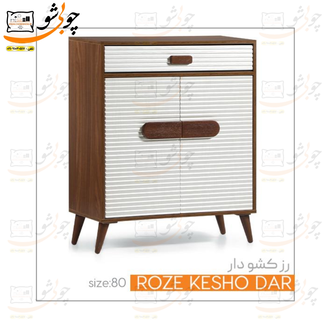 کمپانی چوبی شو یک سیستم یکپارچه تولید محصولات دکوراسیون میباشد که به راحتی جهت رفاه مشتریان عزیز محصولات خود را با قیمت تولید مستقیماً از طریق وب سایت رسمی خود www.chobishow.ir به شما عزیزان ارائه میکند. جاکفشی مدل رز کشو دار از تولیدات جدید کمپانی چوبی شو میباشد که تمامی مراحل ساخت تولید آن در خود کمپانی صورت میپذیرد. جهت انتخاب رنگ بعد از ثبت سفارش شما همکاران ما در پشتیبانی تماس گرفته و مشاوره کاملی را خدمت شما عزیزان ارائه میدهند.