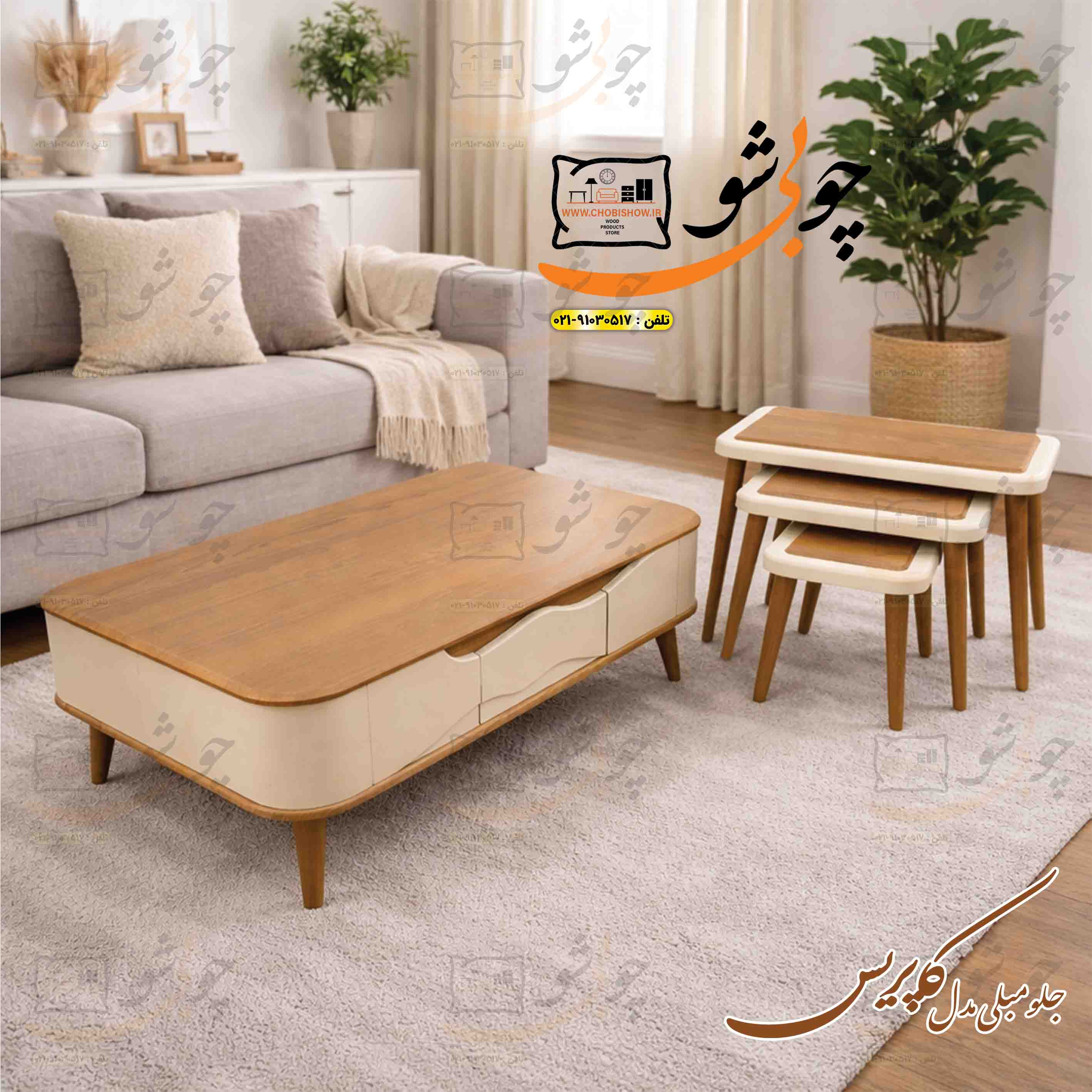 کمپانی چوبی شو یک سیستم یکپارچه تولید محصولات دکوراسیون میباشد که به راحتی جهت رفاه مشتریان عزیز محصولات خود را با قیمت تولید مستقیماً از طریق وب سایت رسمی خود www.chobishow.ir به شما عزیزان ارائه میکند. ست جلومبلی و عسلی مدل کاپریس از تولیدات جدید کمپانی چوبی شو میباشد که تمامی مراحل ساخت تولید آن در خود کمپانی صورت میپذیرد. جهت مشاوره قبل از ثبت سفارش شما همکاران ما در پشتیبانی تماس گرفته و مشاوره کاملی را خدمت شما عزیزان ارائه میدهند.