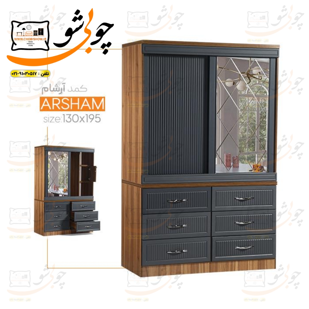 کمد مدل آرشام، ترکیبی از زیبایی و کارایی! با طراحی مدرن و فضای کافی برای سازماندهی لباسها و وسایل شخصی شما، این کمد بهترین انتخاب برای هر خانهای است. ساخته شده از مواد باکیفیت، مقاوم و بادوام. شما عزیزان میتوانید به راحتی از طریق همین صفحه این کمد زیبا را ثبت سفارش کنید تا گروه تولید چوبی شو فقط در مدت زمان ۱۵ روز کاری این کمد زیبا را تولید و به دست شما عزیزان در هر نقطه از کشور برساند. شما عزیزان برای سوالات و مشاوره میتوانید با پشتیبانی ۲۴ ساعته گروه تولید چوبیشو به شماره ۰۲۱۹۱۰۳۰۵۱۷ (داخلی ۱۰۰) تماس حاصل فرمایید. بدیهیست همکاران ما به تمام سوالات شما در مورد کمد مدل آرشام پاسخی کامل خواهند داد. شماره واتساپ ۰۹۱۲۴۱۳۴۵۹۰ . با انتخاب کمد آرشام، نظم و زیبایی را به خانهتان هدیه دهید و تجربهای متفاوت از سازماندهی را احساس کنید!