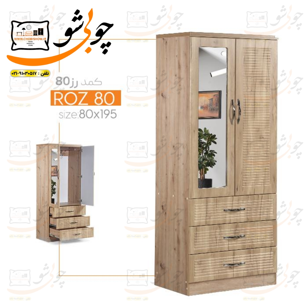 با کمد مدل رز 80، زندگیتان را مرتبتر و شیکتر کنید! این کمد با طراحی مدرن و جادار، فضای کافی برای نگهداری لباسها و وسایل شما فراهم میکند. جنس با کیفیت و مقاوم، ظرافت و زیبایی را به خانهتان میبخشد.شما عزیزان میتوانید به راحتی از طریق همین صفحه این کمد زیبا را ثبت سفارش کنید تا گروه تولید چوبی شو فقط در مدت زمان ۱۵ روز کاری این کمد زیبا را تولید و به دست شما عزیزان در هر نقطه از کشور برساند. شما عزیزان برای سوالات و مشاوره میتوانید با پشتیبانی ۲۴ ساعته گروه تولید چوبیشو به شماره ۰۲۱۹۱۰۳۰۵۱۷ (داخلی ۱۰۰) تماس حاصل فرمایید. بدیهیست همکاران ما به تمام سوالات شما در مورد کمد مدل رز ۸۰ پاسخی کامل خواهند داد. شماره واتساپ ۰۹۱۲۴۱۳۴۵۹۰ . همین حالا سفارش دهید و یک قدم به خانهای منظم و دلنشین نزدیکتر شوید!