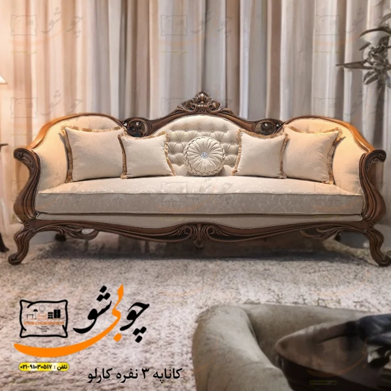 مبلمان کلاسیک زیبای تمام راش کارلو را میتوانید به رنگ دلخواه خود ثبت سفارش کنید فقط کافیست بعد از ثبت سفارش مستقیماً با خط پشتیبانی چوبی شو به شماره 02191030517 - 09199621797 تماس بگیرید و رنگ سفارش مورد نظر خود را اعلام کنید.