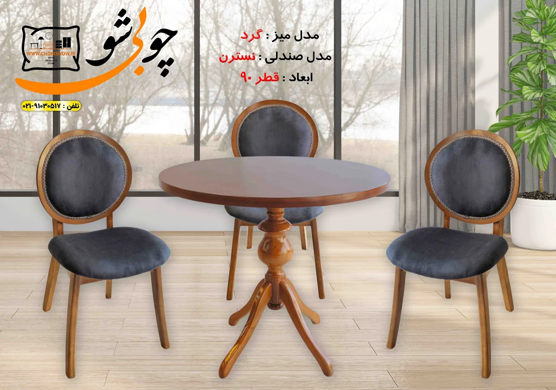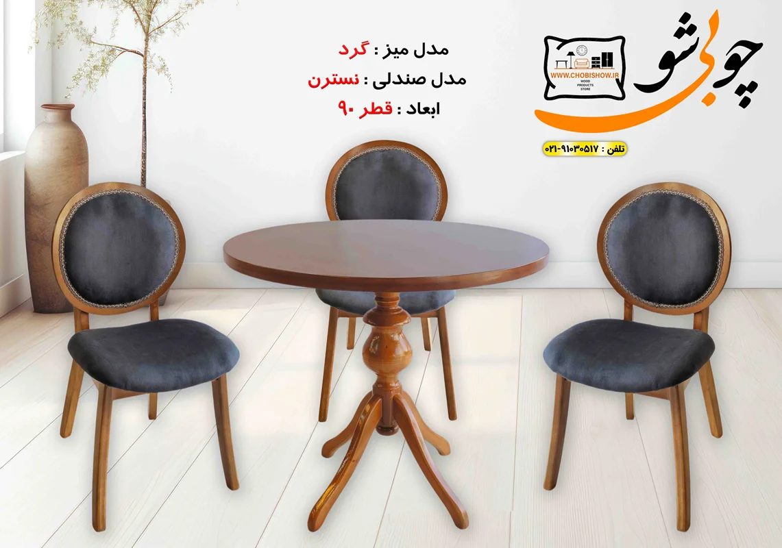 میز ناهار خوری مدل گرد قابل سفارش در ابعاد 4 نفره میباشد. این میز زیبا جدیدا مورد قبول سلایق اکثر کاربران چوبی شو قرار گرفته و مجموعه چوبی شو جهت احترام به سلیقه مصرف کننده وظیفه خود دانسته که این ست زیبا و جذاب را برای شما کاربران عزیز موجود نماید. سادگی در طراحی و کیفیت بالای این میز زیبا از مواردی هست که کاربرانی که این میز را خریداری کرده اند به آن اشاره وافری داشته اند.این میز ناهار خوری زیبا قابل ست با صندلی های ناهار خوری مدل سون گرد میباشد که همین امر سبب زیبا تر شدن این میز ناهار خوری زیبا میشود.شما کاربران گرامی برای سفارش صندلی ها میتوانید به بخش صندلی های ناهار خوری وب سایت مراجعه کنید و صندلی دلخواه خود را به سبد خرید خود اضافه نمایید. برای اطلاعات بیشتر میتوانید با شماره 02191030517 تماس حاصل فرمایید. مدت زمان تحویل این میز زیبا 4 روز کاری بعد از ثبت سفارش میباشد.