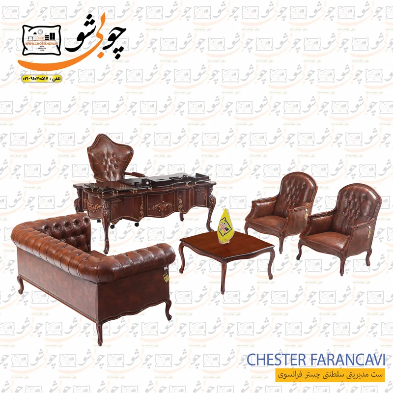 اگر به دنبال زیبایی بی حد و مرز برای دفتر کاری خود هستید به شدت پیشنهاد میکنیم از ست مبلمان و مدیریتی اداری مدل چستر فرانسوی استفاده کنید. این مدل زیبا جلوه ی خاص و زیبایی را به دفتر کار شما میدهد. جنس پایه استفاده شده در این مدل زیبا راش گرجستان میباشد و بدنه ی محصول از ام دی اف با روکش طبیعی چوب بوده و قابل سفارش به رنگ دلخواه شما میباشد. شما میتوانید هم رنگ چوب و هم رنگ پارچه این سِت زیبا را به دلخواه خود با تم رنگی دفتر خود سفارش دهید.این ست زیبا با 24 ماه ضمانت بی قید و شرط خدمت شما ارسال میگردد.مدت زمان تحویل این مدل زیبا 15 روز کاری میباشد.