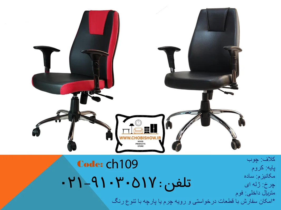 صندلی اداری مدل CH109 گروه تولیدی چوبی شو ساخته شده از بهترین متریال های موجود در بازار می باشد و این امر سبب گردیده تا ما بتوانیم بهترین کیفیت را به همراه بهترین قیمت تقدیم مشتریان عزیز گروه تولیدی چوبی شو نماییم.کلاف بدنه های این صندلی زیبا از جنس چوب بوده و دارای پایه های کروم میباشد.همچنین از فوم های درجه1 در ساخت نشیمن این محصول زیبا استفاده گردیده است تا شما عزیزان نشیمن راحتی را داشته باشید. مدت زمان تحویل 4 روز کاری پس از ثبت سفارش شما میباشد.