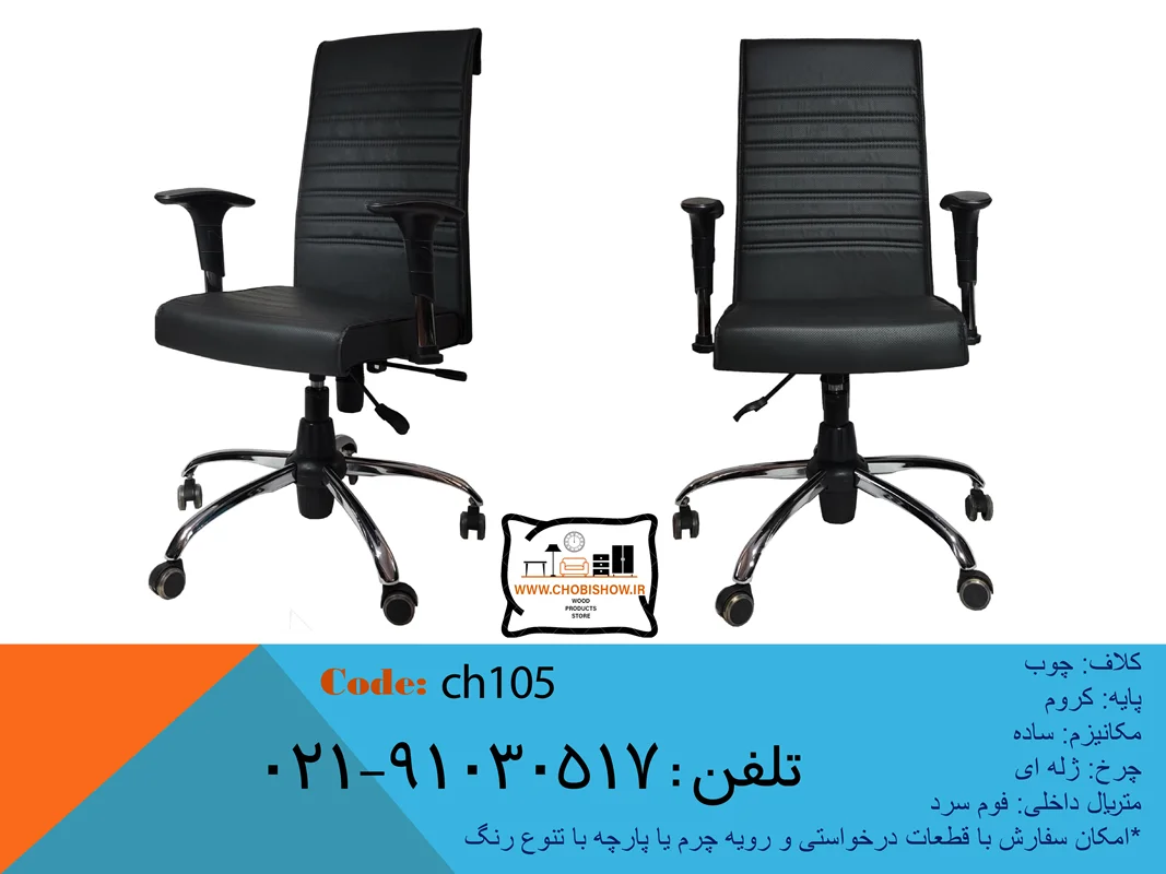 صندلی اداری مدل CH105 گروه تولیدی چوبی شو ساخته شده از بهترین متریال های موجود در بازار می باشد و این امر سبب گردیده تا ما بتوانیم بهترین کیفیت را به همراه بهترین قیمت تقدیم مشتریان عزیز گروه تولیدی چوبی شو نماییم.کلاف بدنه های این صندلی زیبا از جنس چوب بوده و دارای پایه های کروم میباشد.همچنین از فوم سرد در ساخت نشیمن این محصول زیبا استفاده گردیده است تا شما عزیزان نشیمن راحتی را داشته باشید. مدت زمان تحویل 4 روز کاری پس از ثبت سفارش شما میباشد.
