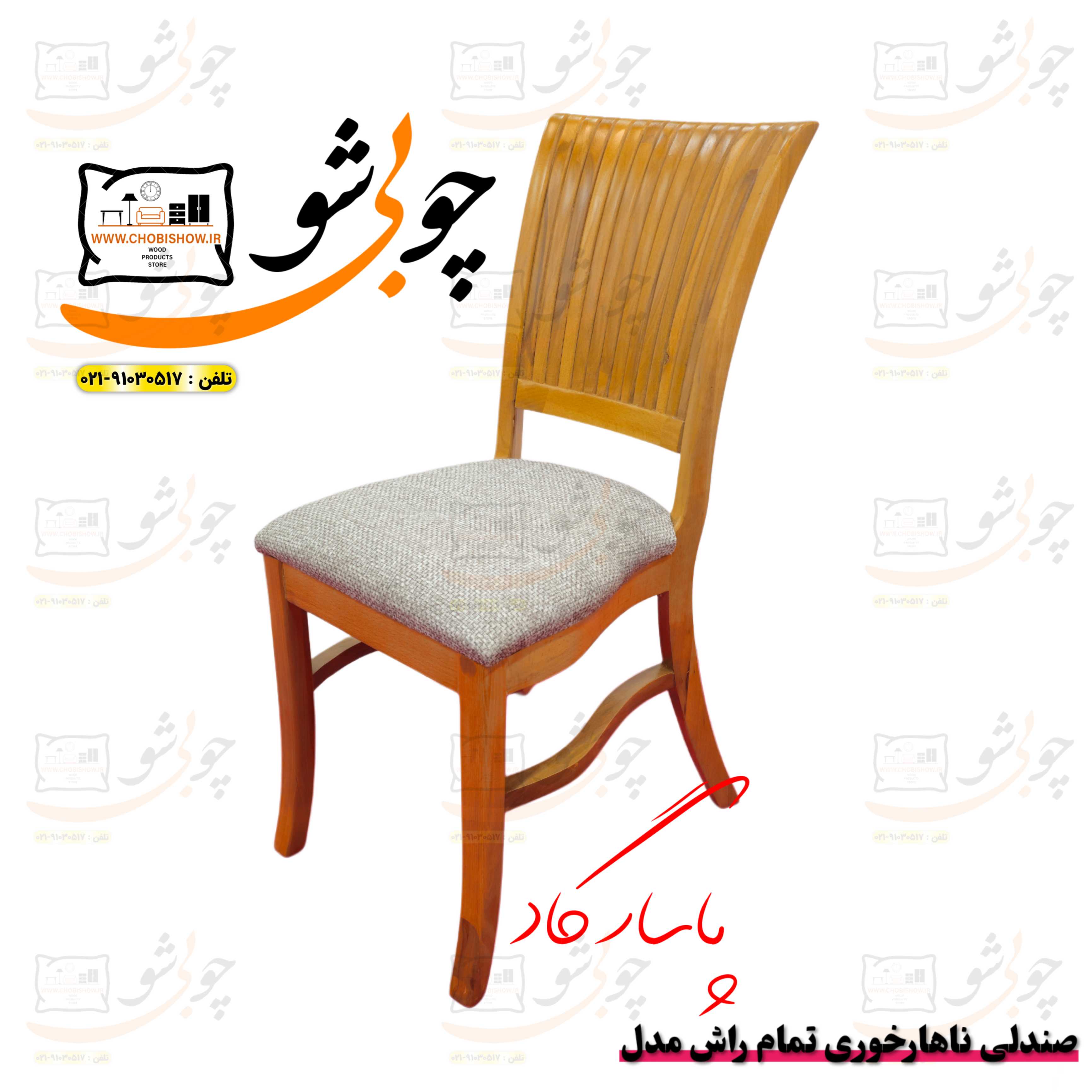 کمپانی چوبی شو یک سیستم یکپارچه تولید محصولات دکوراسیون میباشد که به راحتی جهت رفاه مشتریان عزیز محصولات خود را با قیمت تولید مستقیماً از طریق وب سایت رسمی خود www.chobishow.ir به شما عزیزان ارائه میکند. صندلی ناهارخوری مدل پاسارگاد از تولیدات جدید کمپانی چوبی شو میباشد که تمامی مراحل ساخت تولید آن در خود کمپانی صورت میپذیرد. جهت انتخاب رنگ بعد از ثبت سفارش شما همکاران ما در پشتیبانی تماس گرفته و مشاوره کاملی را خدمت شما عزیزان ارائه میدهند.