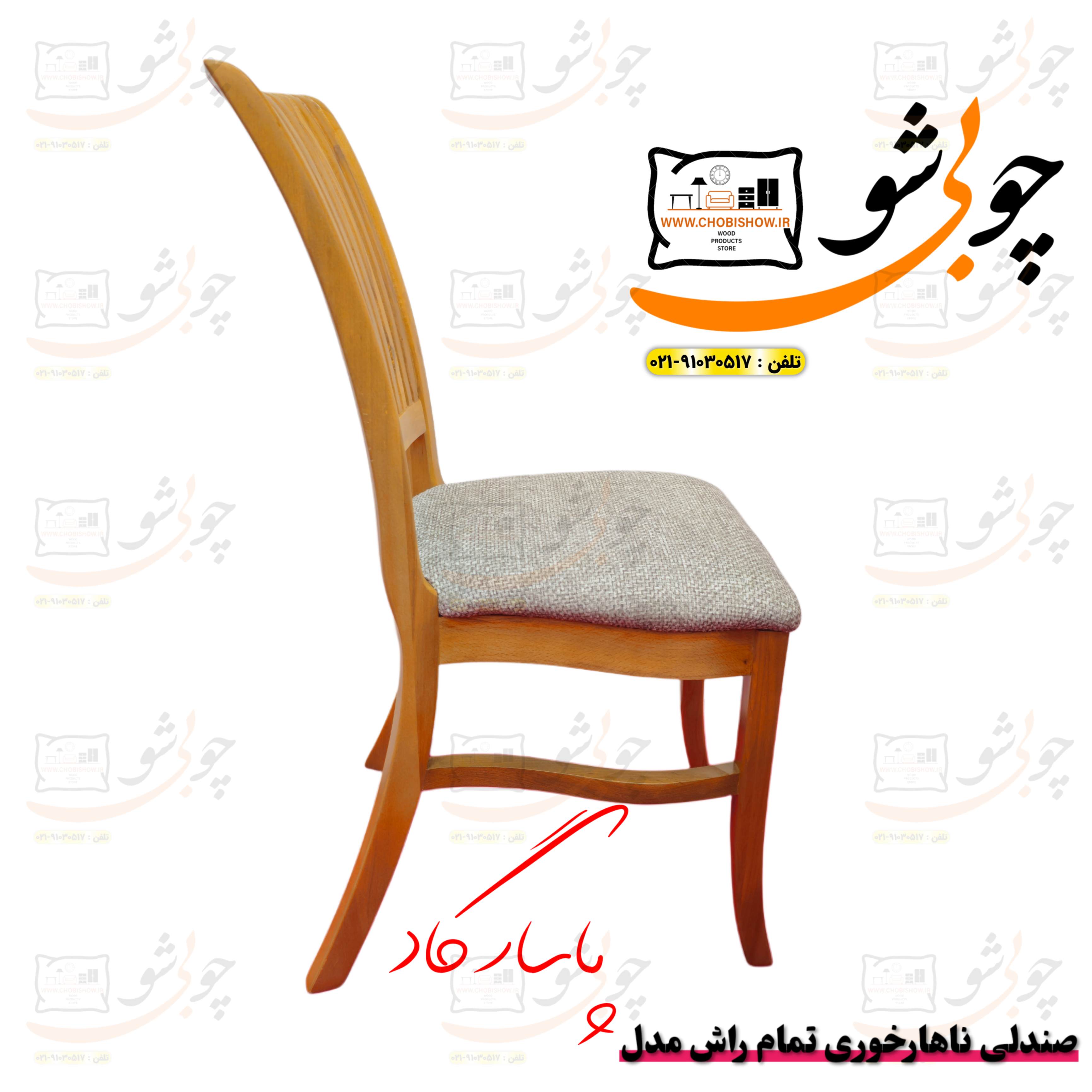 صندلی ناهارخوری مدل پاسارگاد از چوب تمام راش، ترکیبی از زیبایی و دوام برای فضای خانه شماست. طراحی ارگونومیک و شیک آن راحتی بینظیری را در حین غذاخوری فراهم میکند. شما عزیزان و همراهان همیشگی گروه تولید چوبی شو میتوانید به راحتی از طریق همین صفحه این صندلی زیبا را به رنگ دلخواه ثبت سفارش کنید . جهت هرگونه مشاوره قبل از خرید میتوانید با شماره 02191030517 (24 ساعته ) تماس بگیرید. مدت زمان ساخت و ارسال این صندلی زیبا 8 روز کاری میباشد. 09124134590-09199621797 این صندلی با کیفیت بینظیر و استحکام بالا، انتخابی هوشمندانه برای تمام سلیقههاست. همین امروز به دکوراسیون خانهتان جلوهای تازه ببخشید!