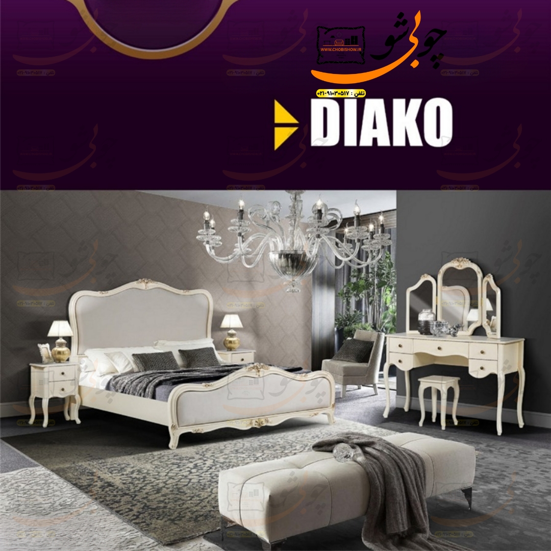 با سرویس خواب مدل دیاکو، خوابی رویایی و آرامشبخش را تجربه کنید. طراحی مدرن و کیفیت بینظیر این محصول، زیبایی و راحتی را به اتاق خواب شما هدیه میدهد. ساخته شده از بهترین مواد اولیه، این سرویس خواب شیک و ماندگار، مناسب برای افرادی است که به دنبال ترکیبی از زیبایی و دوام هستند. شما عزیزان میتوانید به راحتی از طریق همین صفحه این سرویس خواب زیبا را ثبت سفارش کنید تا گروه تولید چوبی شو فقط در مدت زمان ۲۰ روز کاری این سرویس خواب زیبا را تولید و به دست شما عزیزان در هر نقطه از کشور برساند. شما عزیزان برای سوالات و مشاوره میتوانید با پشتیبانی ۲۴ ساعته گروه تولید چوبیشو به شماره ۰۲۱۹۱۰۳۰۵۱۷ (داخلی ۱۰۰) تماس حاصل فرمایید. بدیهیست همکاران ما به تمام سوالات شما در مورد سرویس خواب دیاکو پاسخی کامل خواهند داد. شماره واتساپ ۰۹۱۲۴۱۳۴۵۹۰ . همین حالا سفارش دهید و دگرگونی را احساس کنید! ۰۸
