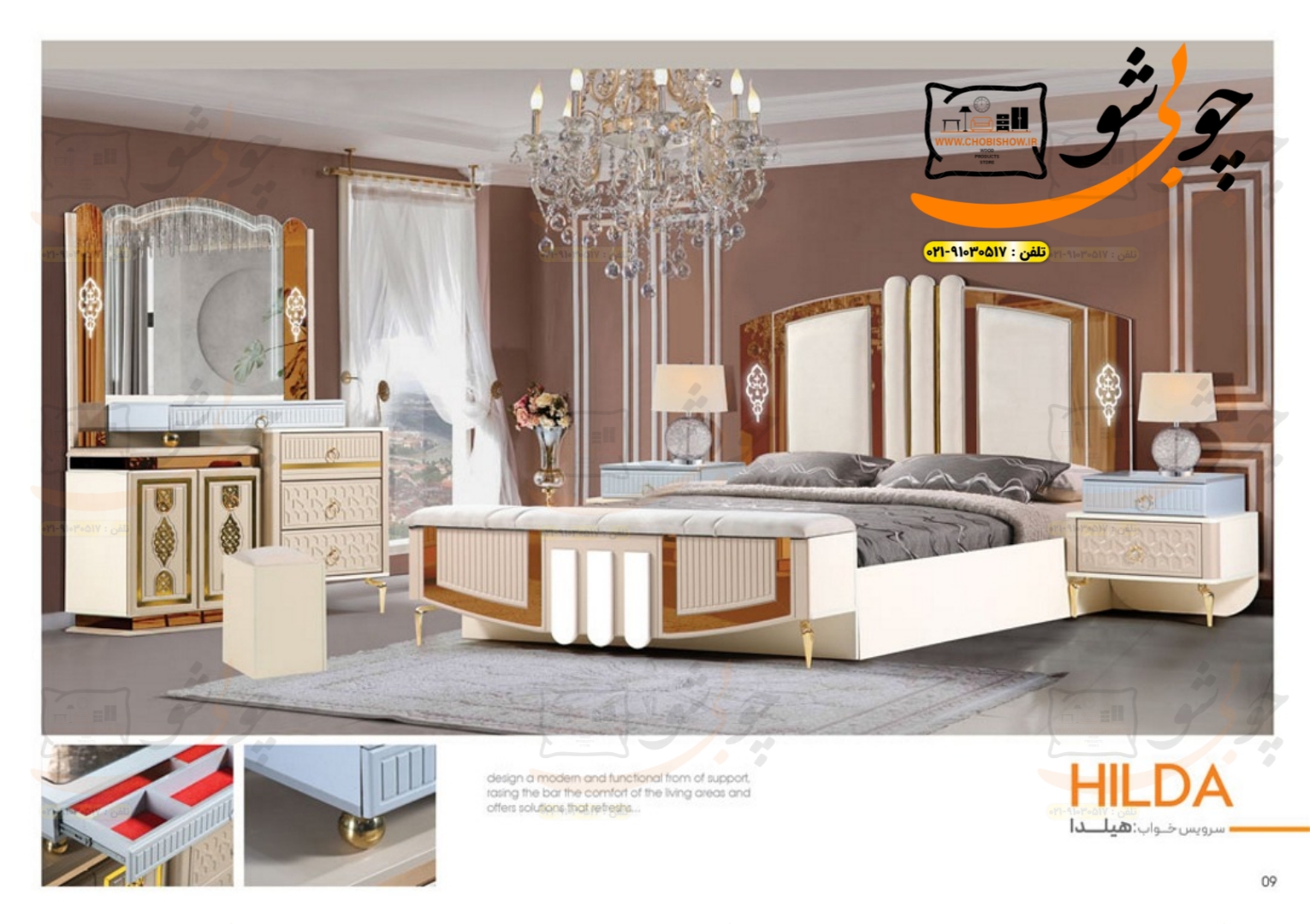 خواب راحت و آرامشبخش را با سرویس خواب مدل هیلدا تجربه کنید! طراحی شیک و مدرن این سرویس خواب، زیبایی اتاق خواب شما را دوچندان میکند. با استفاده از مواد با کیفیت و دوام بالا، هیلدا انتخابی ایدهآل برای خوابی عمیق و آرام است. شما عزیزان میتوانید به راحتی از طریق همین صفحه این سرویس خواب زیبا را ثبت سفارش کنید تا گروه تولید چوبی شو فقط در مدت زمان ۲۰ روز کاری این سرویس خواب زیبا را تولید و به دست شما عزیزان در هر نقطه از کشور برساند. شما عزیزان برای سوالات و مشاوره میتوانید با پشتیبانی ۲۴ ساعته گروه تولید چوبیشو به شماره ۰۲۱۹۱۰۳۰۵۱۷ (داخلی ۱۰۰) تماس حاصل فرمایید. بدیهیست همکاران ما به تمام سوالات شما در مورد سرویس خواب ... پاسخی کامل خواهند داد. شماره واتساپ ۰۹۱۲۴۱۳۴۵۹۰ . همین حالا تحول را به اتاق خواب خود بیاورید و از تخفیفات ویژه بهرهمند شوید!