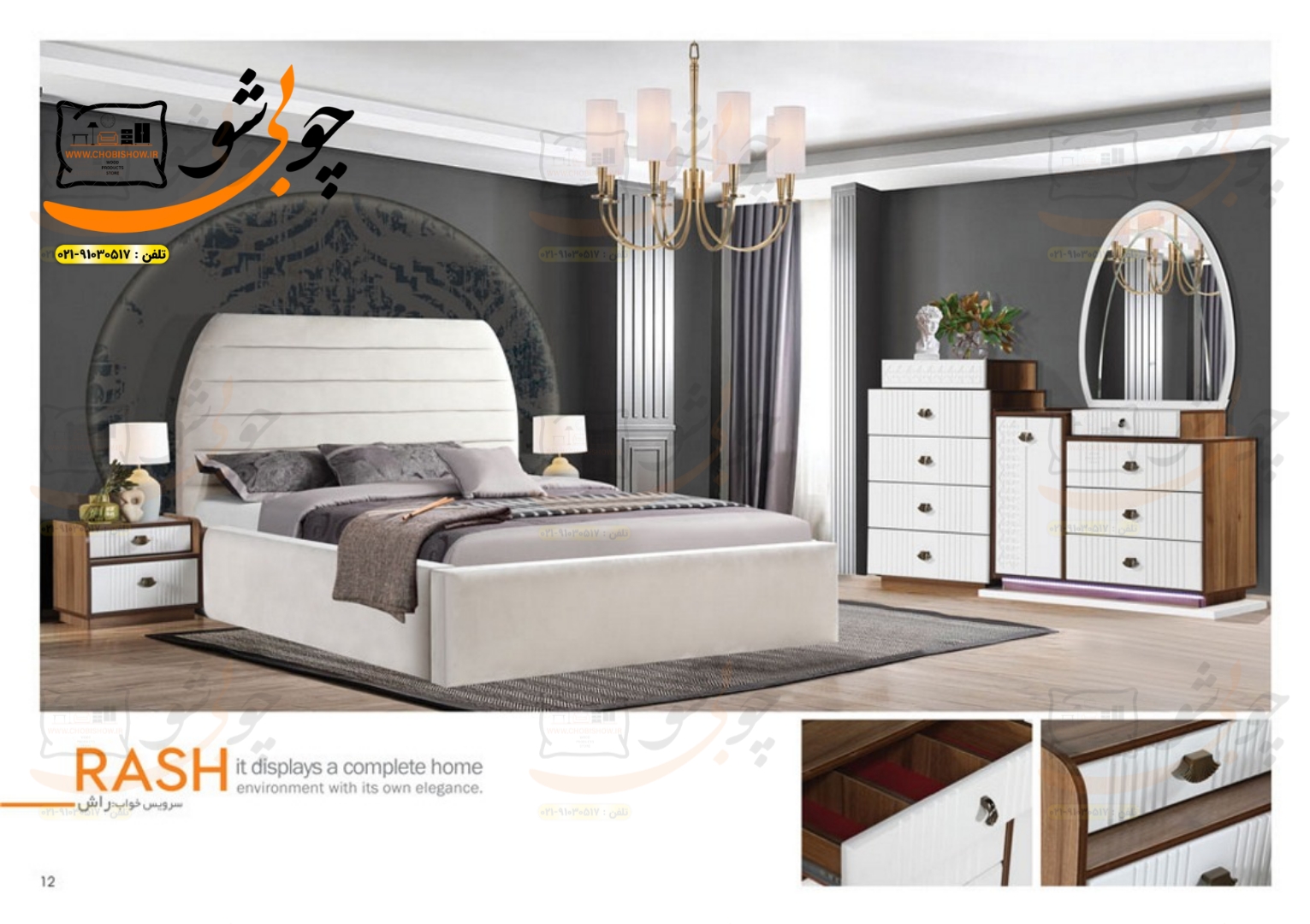 - سرویس خواب مدل راش به شدت از کیفیت بالایی برخوردار است در تولید این سرویس خواب زیبا از بهترین متریال در قسمت رنگ آمیزی استفاده شده که همین امر سبب ضمانت ۲۴ ماهه چوبی شو روی این سرویس خواب میباشد.