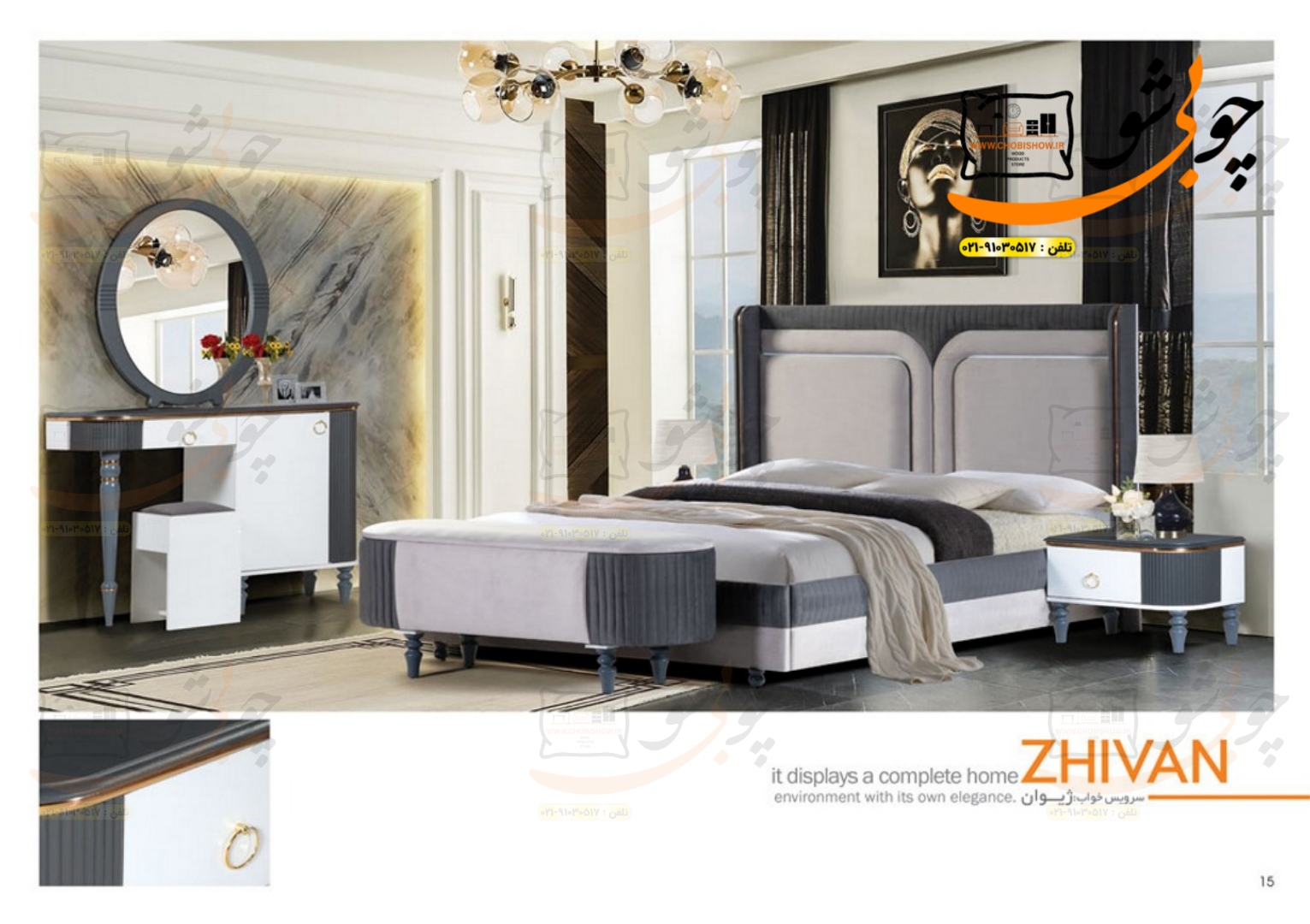 با سرویس خواب مدل ژیوان، شبی به یادماندنی و پرآرامش را تجربه کنید. طراحی مدرن و شیک این سرویس، جلوهای خاص به اتاق خواب شما میبخشد. استفاده از مواد باکیفیت و ساختار مستحکم، دوام و راحتی را تضمین میکند. شما عزیزان میتوانید به راحتی از طریق همین صفحه این سرویس خواب زیبا را ثبت سفارش کنید تا گروه تولید چوبی شو فقط در مدت زمان ۲۰ روز کاری این سرویس خواب زیبا را تولید و به دست شما عزیزان در هر نقطه از کشور برساند. شما عزیزان برای سوالات و مشاوره میتوانید با پشتیبانی ۲۴ ساعته گروه تولید چوبیشو به شماره ۰۲۱۹۱۰۳۰۵۱۷ (داخلی ۱۰۰) تماس حاصل فرمایید. بدیهیست همکاران ما به تمام سوالات شما در مورد سرویس خواب ژیوان پاسخی کامل خواهند داد. شماره واتساپ ۰۹۱۲۴۱۳۴۵۹۰ . فرصت را غنیمت شمارید و زیبایی و آرامش را به خود هدیه دهید.