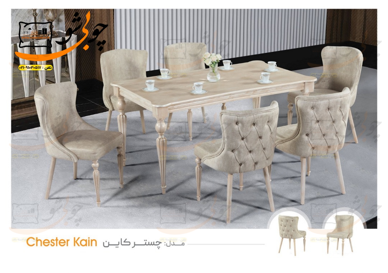 میز و صندلی ناهار خوری مدل چستر کاین، ترکیبی از زیبایی و کارایی که هر فضای ناهارخوری را به یک مکان خاص و دلنشین تبدیل میکند. با طراحی کلاسیک و ساخته شده از مواد با کیفیت، این ست به شما تجربهای راحت و شیک ارائه میدهد. شما عزیزان میتوانید به راحتی از طریق همین صفحه این میز و صندلی ناهار خوری زیبا را با رنگ پارچه دلخواه ثبت سفارش کنید تا گروه تولید چوبی شو فقط در مدت زمان ۱۵ روز کاری این میز و صندلی زیبا را با رنگ درخواستی شما تولید و به دست شما عزیزان در هر نقطه از کشور برساند. شما عزیزان برای سوالات و مشاوره میتوانید با پشتیبانی ۲۴ ساعته گروه تولید چوبیشو به شماره ۰۲۱۹۱۰۳۰۵۱۷ (داخلی ۱۰۰) تماس حاصل فرمایید. بدیهیست همکاران ما به تمام سوالات شما در مورد میز و صندلی ناهارخوری چستر کاین پاسخی کامل خواهند داد. شماره واتساپ ۰۹۱۲۴۱۳۴۵۹۰ . همین امروز خرید کنید و لحظات خوشی را با خانوادهتان بسازید!