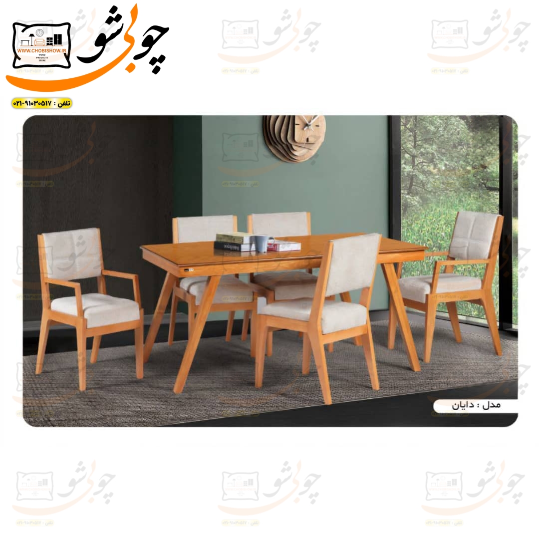 کمپانی چوبی شو یک سیستم یکپارچه تولید محصولات دکوراسیون میباشد که به راحتی جهت رفاه مشتریان عزیز محصولات خود را با قیمت تولید مستقیماً از طریق وب سایت رسمی خود www.chobishow.ir به شما عزیزان ارائه میکند. میز و صندلی ناهار خوری مدل دایان از تولیدات جدید کمپانی چوبی شو میباشد که تمامی مراحل ساخت تولید آن در خود کمپانی صورت میپذیرد. جهت انتخاب رنگ بعد از ثبت سفارش شما همکاران ما در پشتیبانی تماس گرفته و مشاوره کاملی را خدمت شما عزیزان ارائه میدهند.