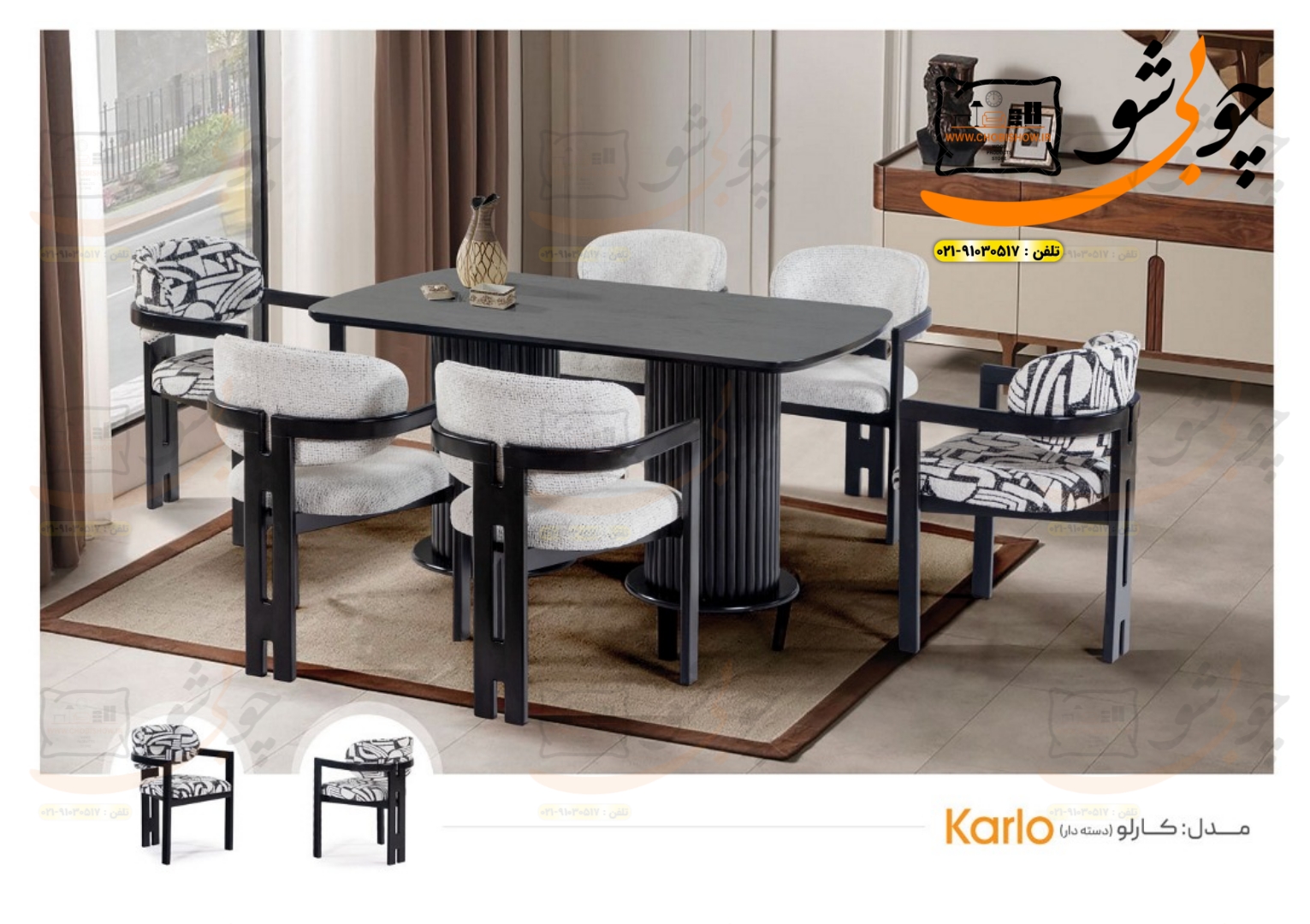 میز و صندلی ناهارخوری مدل کارلو با طراحی شیک و مدرن، تجربهای بینظیر از راحتی و زیبایی را به دکوراسیون منزل شما میآورد. دستههای ارگونومیک این صندلیها با نشیمنگاه نرم و میز مقاوم چوبی، لحظات لذتبخش دورهمیهایتان را تضمین میکند. شما عزیزان میتوانید به راحتی از طریق همین صفحه این میز و صندلی ناهار خوری زیبا را با رنگ پارچه دلخواه ثبت سفارش کنید تا گروه تولید چوبی شو فقط در مدت زمان ۱۵ روز کاری این میز و صندلی زیبا را با رنگ درخواستی شما تولید و به دست شما عزیزان در هر نقطه از کشور برساند. شما عزیزان برای سوالات و مشاوره میتوانید با پشتیبانی ۲۴ ساعته گروه تولید چوبیشو به شماره ۰۲۱۹۱۰۳۰۵۱۷ (داخلی ۱۰۰) تماس حاصل فرمایید. بدیهیست همکاران ما به تمام سوالات شما در مورد میز و صندلی ناهارخوری کارلو (دسته دار) پاسخی کامل خواهند داد. شماره واتساپ ۰۹۱۲۴۱۳۴۵۹۰ . همین حالا سفارش دهید و به فضای دلنشین خانهتان جلوهای جدید ببخشید!