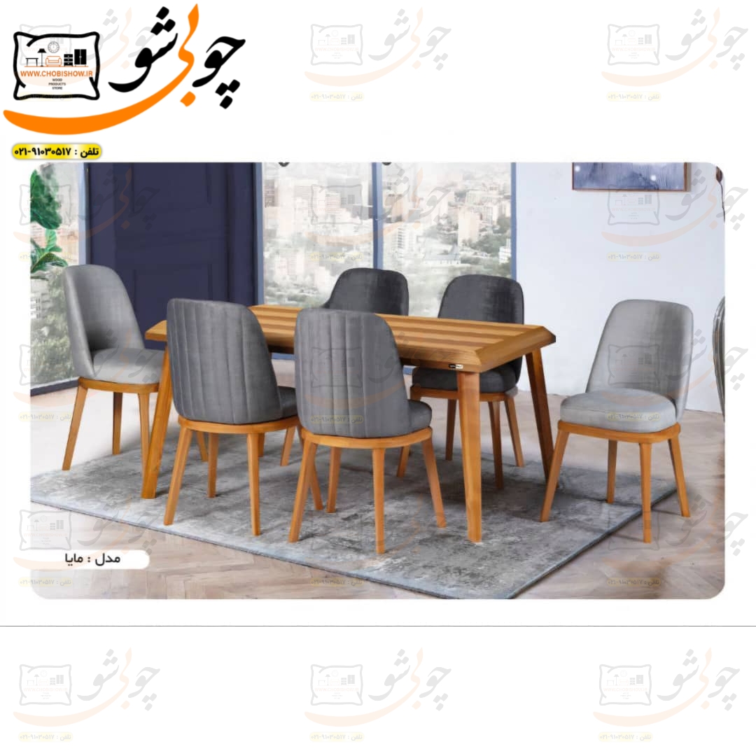 کمپانی چوبی شو یک سیستم یکپارچه تولید محصولات دکوراسیون میباشد که به راحتی جهت رفاه مشتریان عزیز محصولات خود را با قیمت تولید مستقیماً از طریق وب سایت رسمی خود www.chobishow.ir به شما عزیزان ارائه میکند. میز و صندلی ناهار خوری مدل مایا از تولیدات جدید کمپانی چوبی شو میباشد که تمامی مراحل ساخت تولید آن در خود کمپانی صورت میپذیرد. جهت انتخاب رنگ بعد از ثبت سفارش شما همکاران ما در پشتیبانی تماس گرفته و مشاوره کاملی را خدمت شما عزیزان ارائه میدهند.