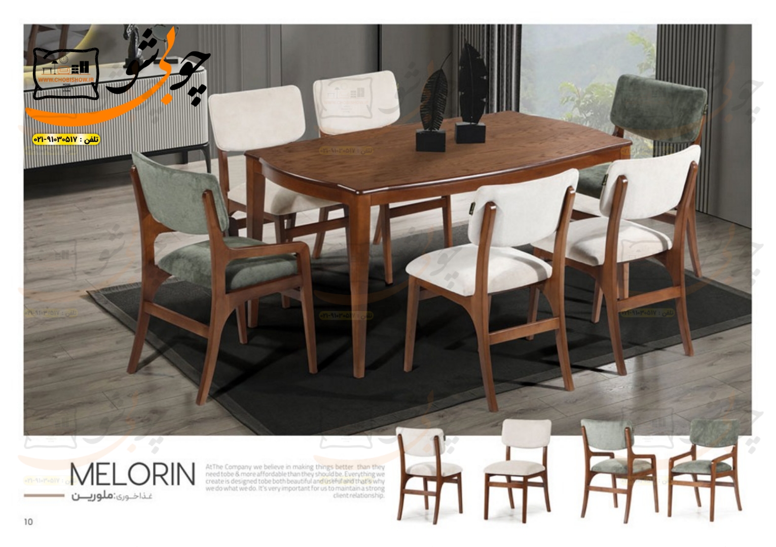 با میز ناهارخوری مدل ملورین، زیبایی و کیفیت را به دکوراسیون خانهتان بیاورید! ساخته شده از چوب طبیعی راش، این میز با طراحی مدرن و دوام بینظیر، ایدهآل برای هر خانهای است. ایجاد لحظات گرم و خوش با خانواده و دوستان، اکنون ممکن است. شما عزیزان میتوانید به راحتی از طریق همین صفحه این میز و صندلی ناهار خوری زیبا را با رنگ چوب و پارچه دلخواه ثبت سفارش کنید تا گروه تولید چوبی شو فقط در مدت زمان ۱۲ روز کاری این میز و صندلی زیبا را با رنگ درخواستی شما تولید و به دست شما عزیزان در هر نقطه از کشور برساند. شما عزیزان برای سوالات و مشاوره میتوانید با پشتیبانی ۲۴ ساعته گروه تولید چوبیشو به شماره ۰۲۱۹۱۰۳۰۵۱۷ تماس حاصل فرمایید. بدیهیست همکاران ما به تمام سوالات شما در مورد میز و صندلی ناهارخوری ملورین پاسخی کامل خواهند داد. شماره واتساپ ۰۹۱۲۴۱۳۴۵۹۰ همین حالا سفارش دهید و تحول را تجربه کنید! 01
