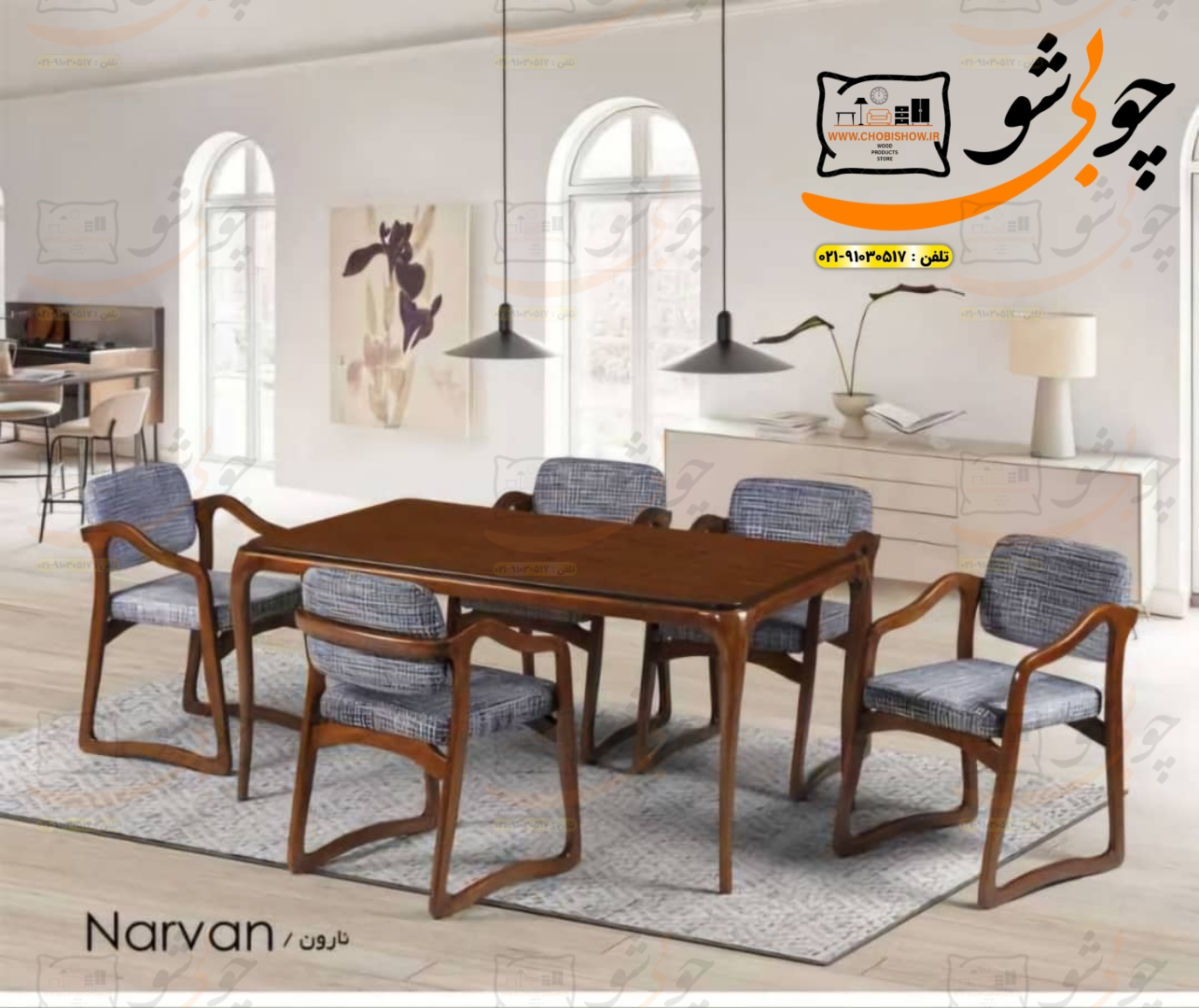 کمپانی چوبی شو یک سیستم یکپارچه تولید محصولات دکوراسیون میباشد که به راحتی جهت رفاه مشتریان عزیز محصولات خود را با قیمت تولید مستقیماً از طریق وب سایت رسمی خود www.chobishow.ir به شما عزیزان ارائه میکند. میز و صندلی ناهارخوری مدل نارون از تولیدات جدید کمپانی چوبی شو میباشد که تمامی مراحل ساخت تولید آن در خود کمپانی صورت میپذیرد. جهت انتخاب رنگ بعد از ثبت سفارش شما همکاران ما در پشتیبانی تماس گرفته و مشاوره کاملی را خدمت شما عزیزان ارائه میدهند.