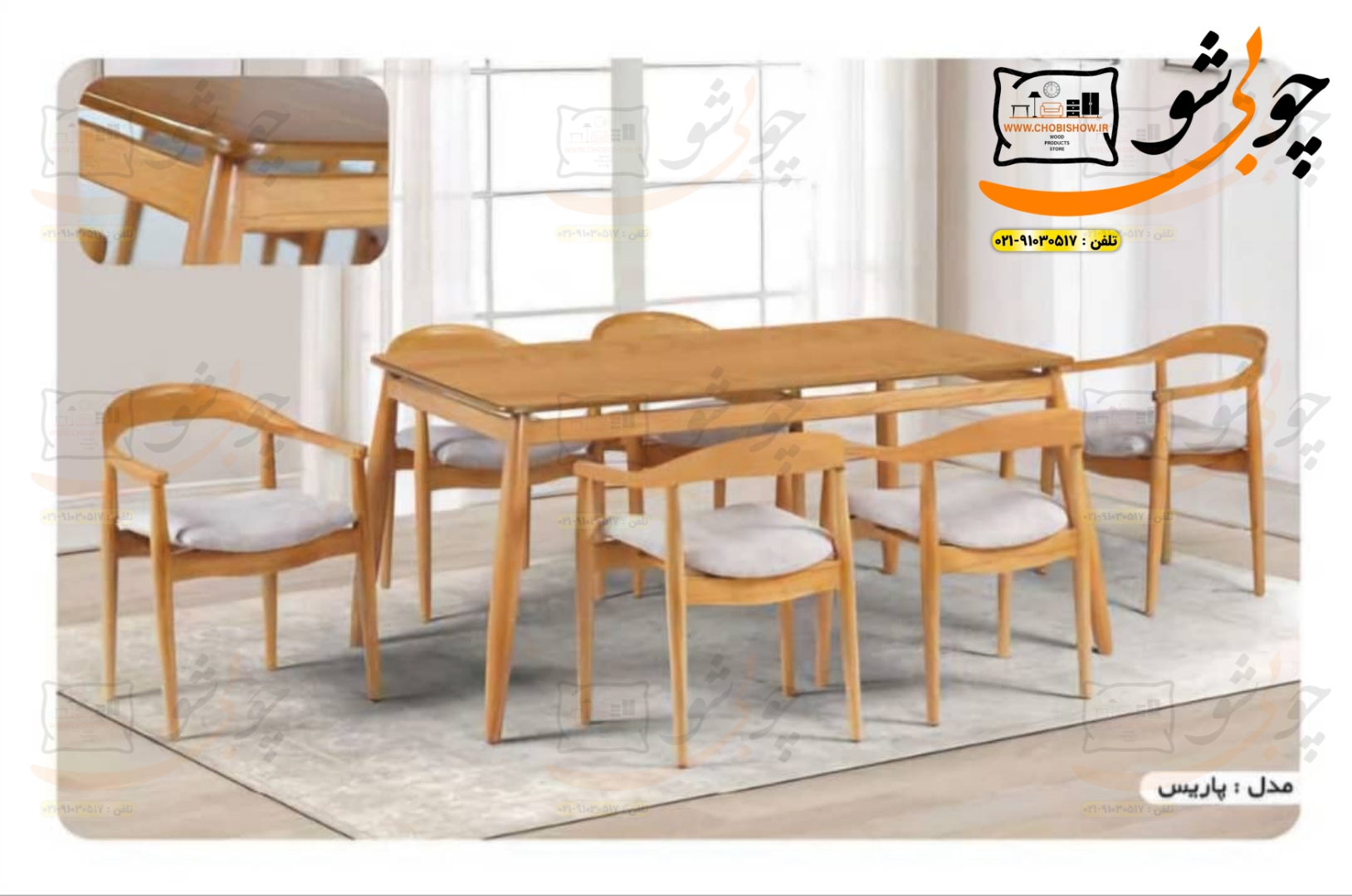 با میز و صندلی ناهار خوری مدل پاریس، شیکترین لحظات را تجربه کنید! طراحی مدرن و راحت این ست، محیط خانه شما را به یک فضای لوکس و دلنشین تبدیل میکند. با کیفیت بالا و دوام عالی، این مجموعه انتخاب بینظیری برای هر خانهای است. شما عزیزان میتوانید به راحتی از طریق همین صفحه این میز و صندلی ناهار خوری زیبا را با رنگ پارچه دلخواه ثبت سفارش کنید تا گروه تولید چوبی شو فقط در مدت زمان ۱۵ روز کاری این میز و صندلی زیبا را با رنگ درخواستی شما تولید و به دست شما عزیزان در هر نقطه از کشور برساند. شما عزیزان برای سوالات و مشاوره میتوانید با پشتیبانی ۲۴ ساعته گروه تولید چوبیشو به شماره ۰۲۱۹۱۰۳۰۵۱۷ داخلی (۱۰۰) تماس حاصل فرمایید. بدیهیست همکاران ما به تمام سوالات شما در مورد میز و صندلی ناهارخوری پاریس پاسخی کامل خواهند داد. شماره واتساپ ۰۹۱۲۴۱۳۴۵۹۰ . همین حالا خرید کنید و دکوراسیون خود را به سطح جدیدی ببرید! ۰۱۰