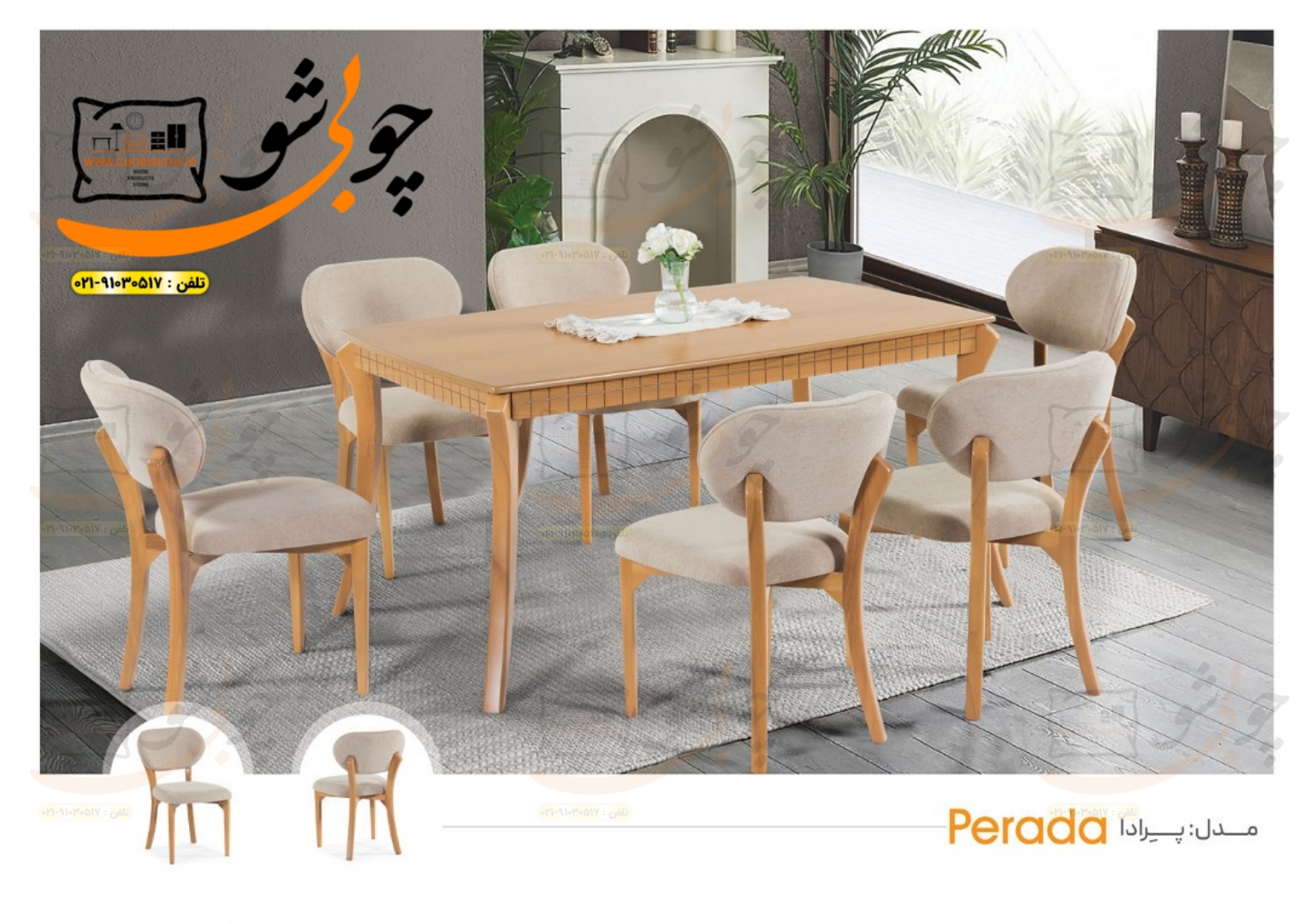میز و صندلی ناهار خوری پرادا، ترکیبی از طراحی مدرن و کیفیت بینظیر است! این ست، با استفاده از مواد با دوام و ظرافت خیرهکننده، هر وعده غذایی را به تجربهای لذتبخش تبدیل میکند. شما عزیزان میتوانید به راحتی از طریق همین صفحه این میز و صندلی ناهار خوری زیبا را با رنگ پارچه دلخواه ثبت سفارش کنید تا گروه تولید چوبی شو فقط در مدت زمان ۱۵ روز کاری این میز و صندلی زیبا را با رنگ درخواستی شما تولید و به دست شما عزیزان در هر نقطه از کشور برساند. شما عزیزان برای سوالات و مشاوره میتوانید با پشتیبانی ۲۴ ساعته گروه تولید چوبیشو به شماره ۰۲۱۹۱۰۳۰۵۱۷ (داخلی ۱۰۰) تماس حاصل فرمایید. بدیهیست همکاران ما به تمام سوالات شما در مورد میز و صندلی ناهارخوری پرادا پاسخی کامل خواهند داد. شماره واتساپ ۰۹۱۲۴۱۳۴۵۹۰ . با خرید این مجموعه، به دکوراسیون خانهتان زیبایی و شکوهی خاص ببخشید و هر میهمانی را به یک لحظه خاص تبدیل کنید.
