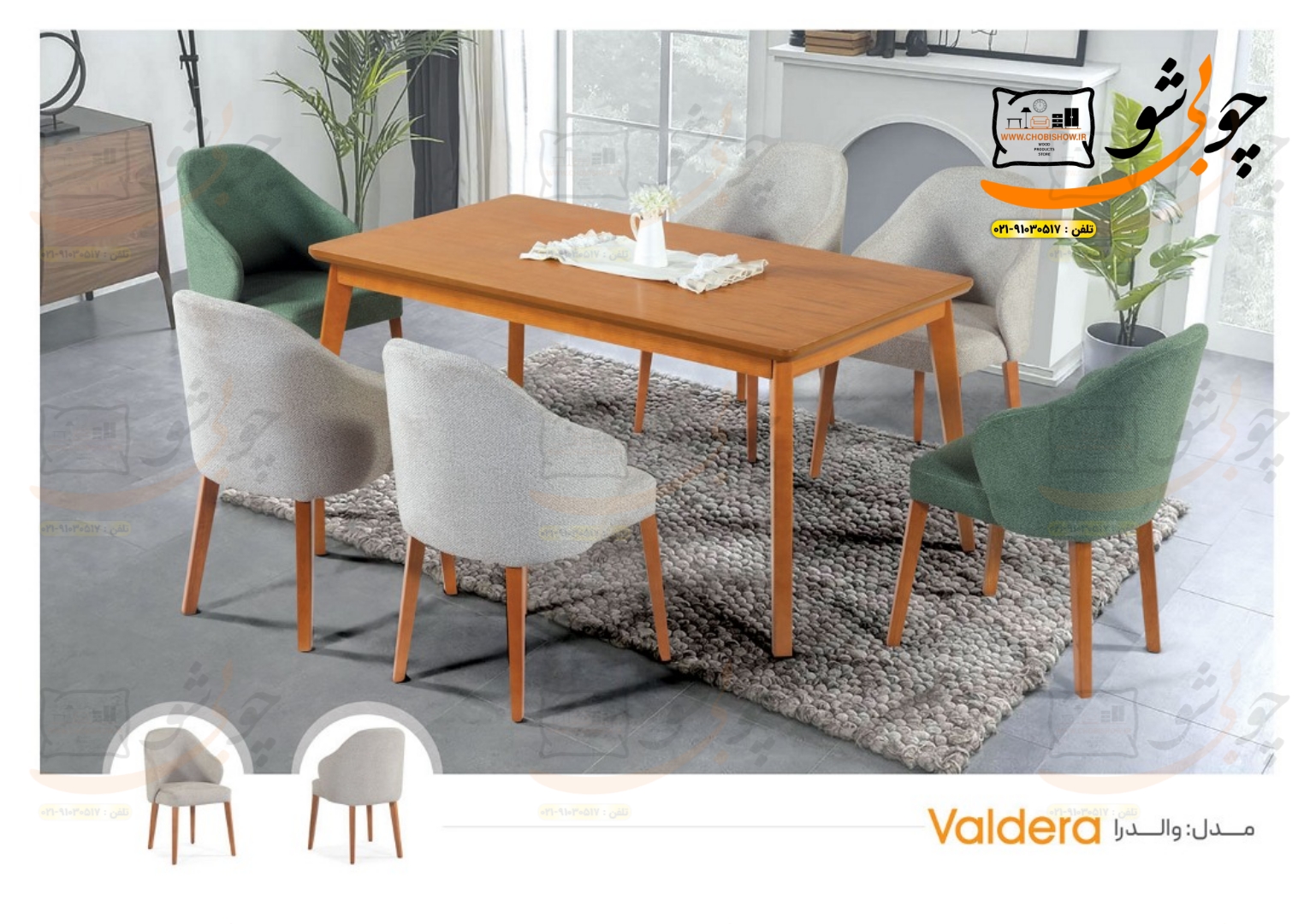 میز و صندلی ناهار خوری والدرا، ترکیبی از طراحی مدرن و راحتی بینظیر! با این مجموعه شیک، تجربهای جدید از صرف غذا داشته باشید. جنس با کیفیت و دوام بالا، مناسب برای هر دکوراسیون داخلی. شما عزیزان میتوانید به راحتی از طریق همین صفحه این میز و صندلی ناهار خوری زیبا را با رنگ پارچه دلخواه ثبت سفارش کنید تا گروه تولید چوبی شو فقط در مدت زمان ۱۵ روز کاری این میز و صندلی زیبا را با رنگ درخواستی شما تولید و به دست شما عزیزان در هر نقطه از کشور برساند. شما عزیزان برای سوالات و مشاوره میتوانید با پشتیبانی ۲۴ ساعته گروه تولید چوبیشو به شماره ۰۲۱۹۱۰۳۰۵۱۷ (داخلی ۱۰۰) تماس حاصل فرمایید. بدیهیست همکاران ما به تمام سوالات شما در مورد میز و صندلی ناهارخوری والدرا پاسخی کامل خواهند داد. شماره واتساپ ۰۹۱۲۴۱۳۴۵۹۰ . همین حالا فضایی دلنشین و متفاوت در خانهتان ایجاد کنید و لذت غذا خوردن را دوچندان کنید!