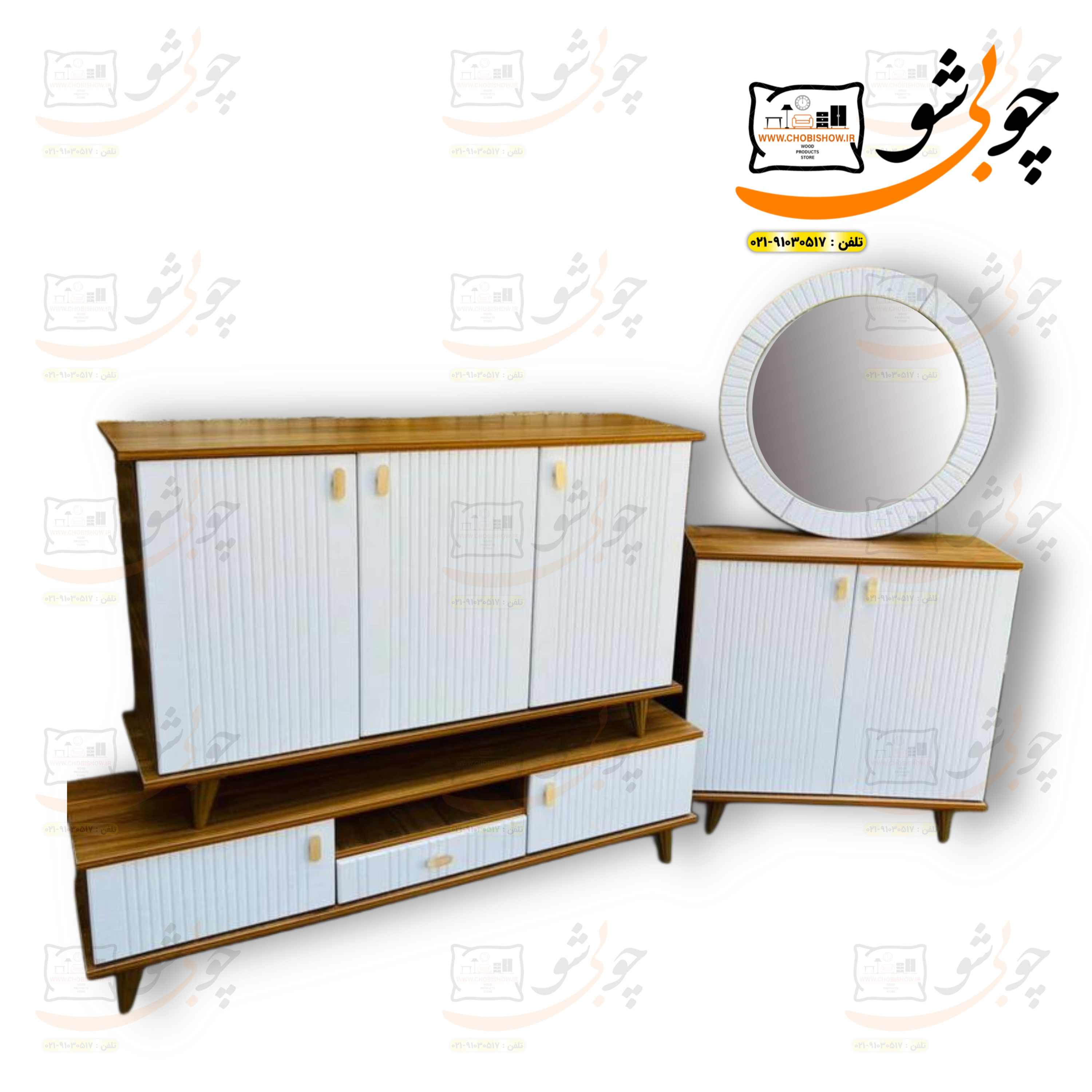 به خانهتان جلوهای نو ببخشید با ست کامل میز کنسول و TV کد 137! ترکیبی از طراحی مدرن و کیفیت بینظیر که فضایی شیک و کاربردی را برای شما به ارمغان میآورد. ساختهشده از مواد باکیفیت و بهروزترین تکنولوژیها، این ست زیبا و کارآمد، انتخابی ایدهآل برای دکوراسیون منزل شماست. همین حالا سفارش دهید و فضایی متفاوت را تجربه کنید! مدت زمان تولید و ارسال این میز tv و میز کنسول زیبا در شهر های غیر از تهران 5 روز کاری و تهران 2 روز کاری میباشد. جهت مشاوره و هماهنگی میتوانید با شماره پشتیبانی ۲۴ ساعته گروه تولیدی چوبی شو ۰۲۱۹۱۰۳۰۵۱۷ تماس حاصل فرمایید. با چوبی شو کیفیت را به قیمت تولید تجربه خواهید کرد. همین حالا سفارش دهید و دکور خانهتان را متحول کنید و به خانهتان حس زندگی ببخشید.